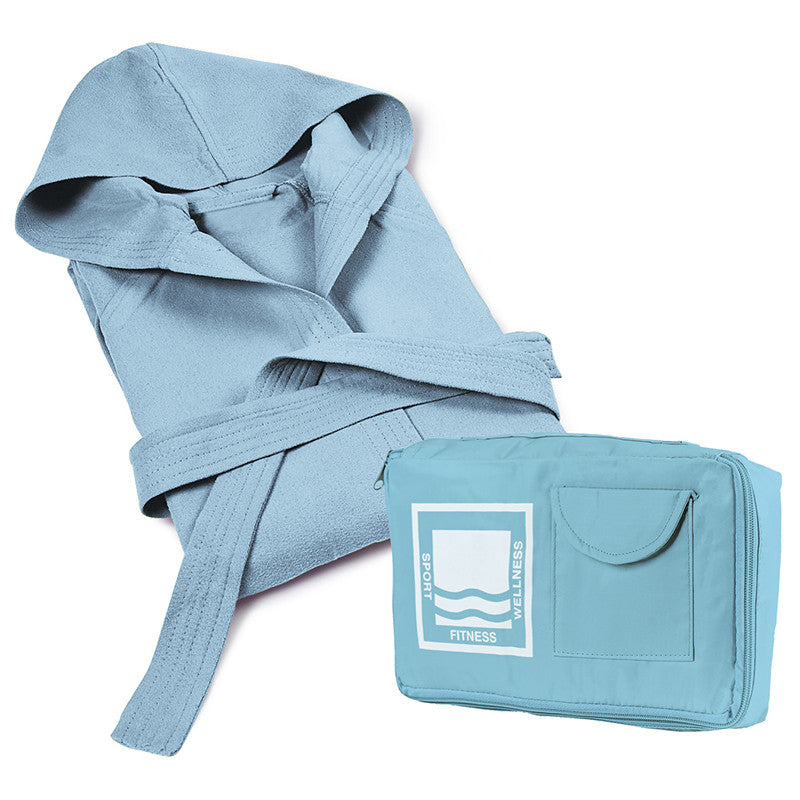 Accappatoio in morbida microfibra ad alta assorbenza dotato di pratiche tasche e di borsa salvaspazio per riporlo; ottimo per i viaggi e per l’attività sportiva.