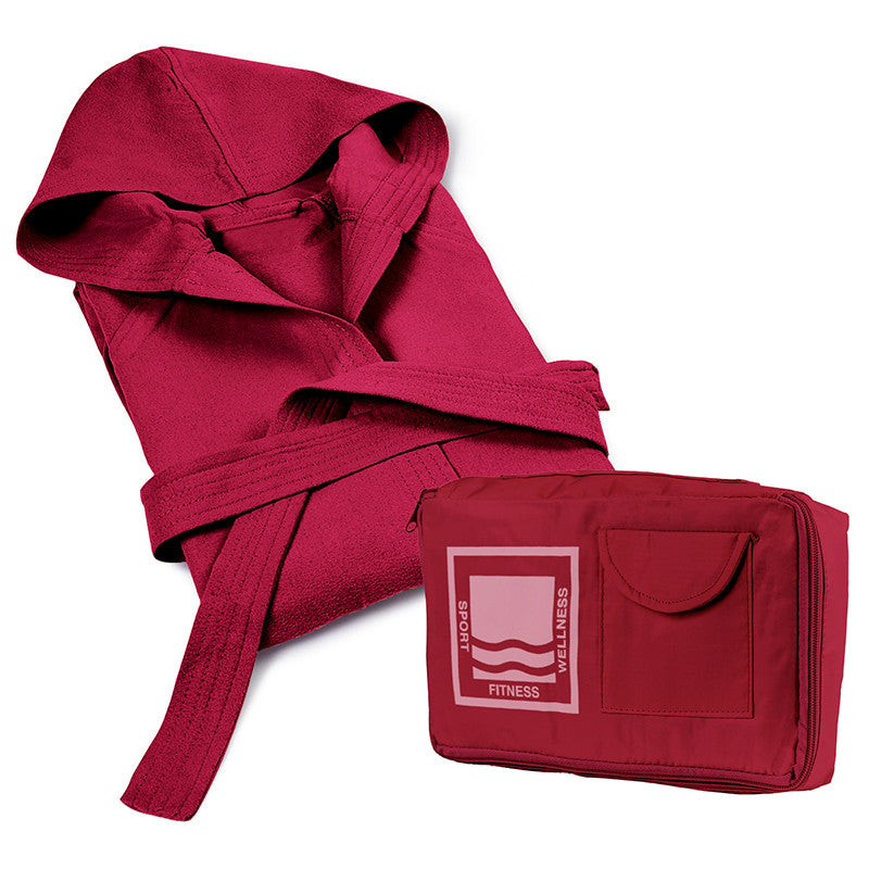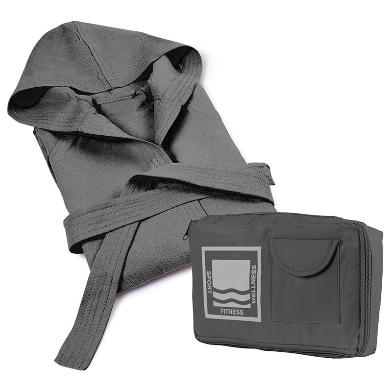 Accappatoio in 100% Microfibra con Cappuccio e Borsa Salvaspazio