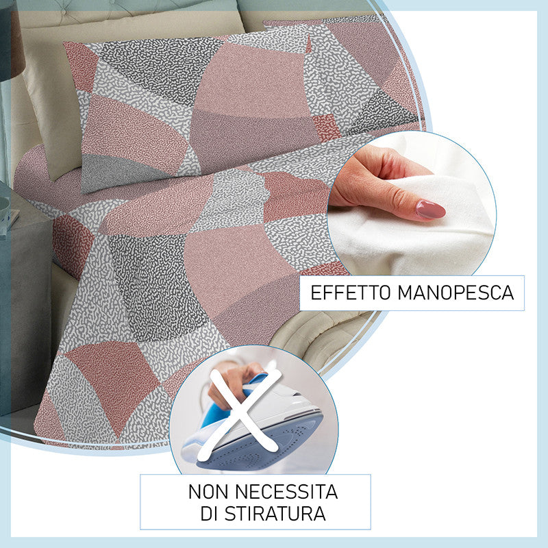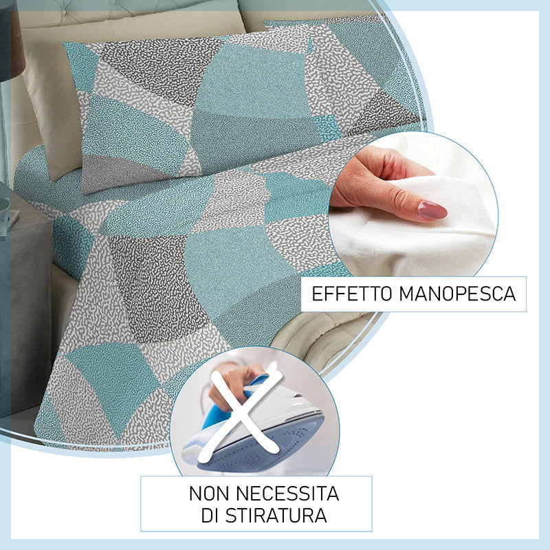 Set completo lenzuola in 100% morbida microfibra effetto manopesca interamente realizzato in Italia.