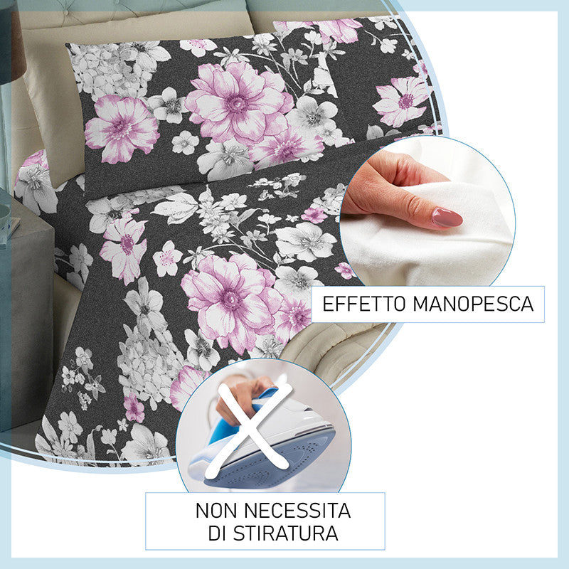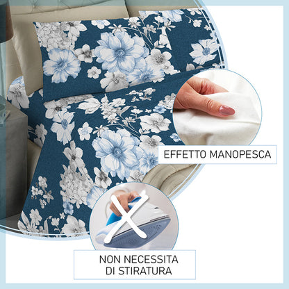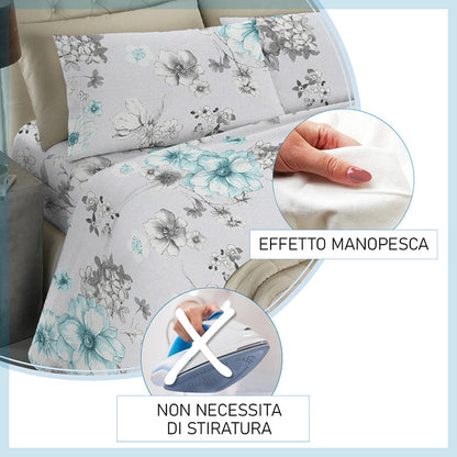 Set completo lenzuola in 100% morbida microfibra effetto manopesca interamente realizzato in Italia.