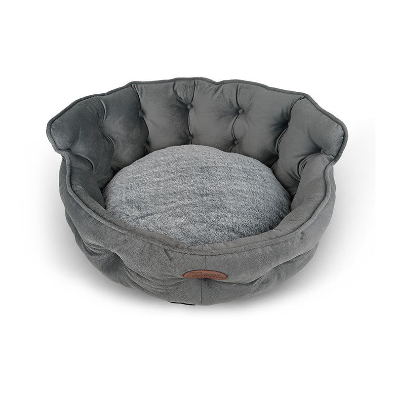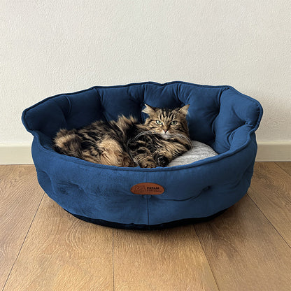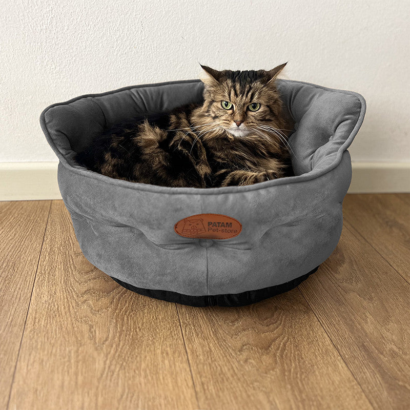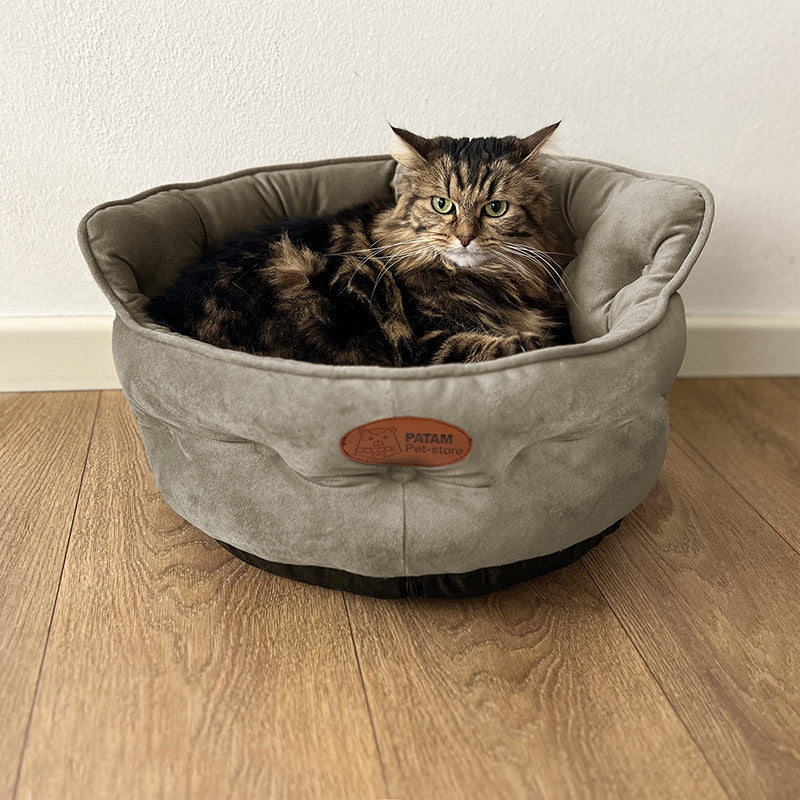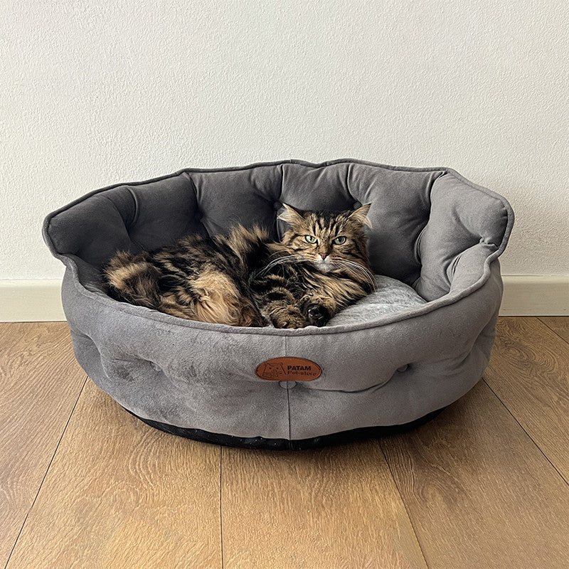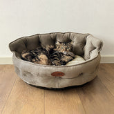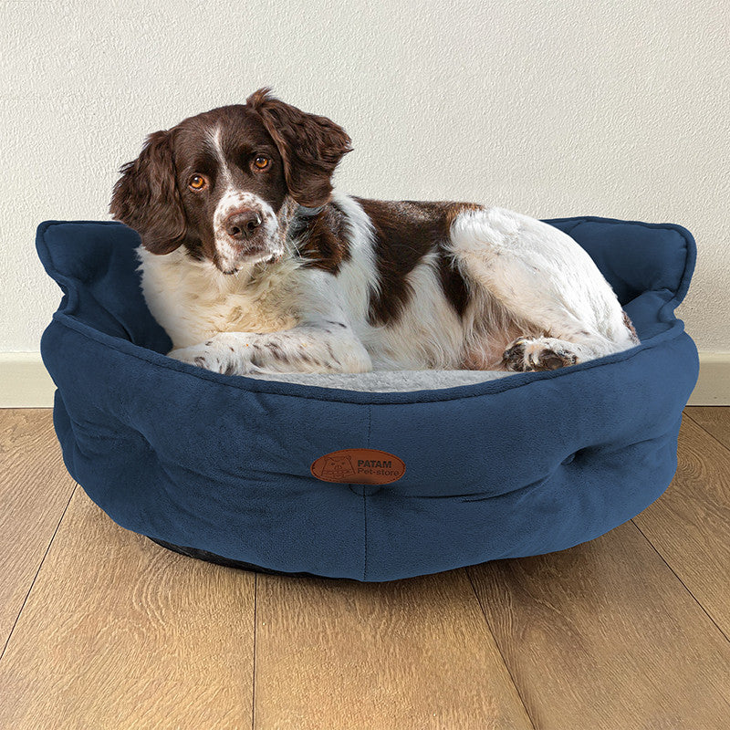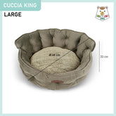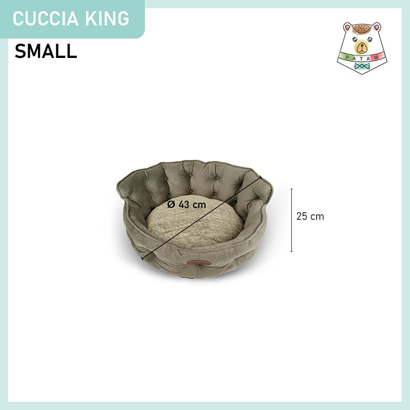 Cuccia per cani e gatti King. Divanetto sagomato con ingresso ribassato e schienale imbottito disponibile in 3 dimensioni per animali di ogni taglia.