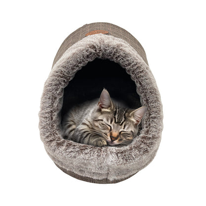 La forma a grotta e le pareti in morbido e caldo pile garantiscono il massimo comfort per gli amici a 4 zampe che soffrono il freddo o che amano rannicchiarsi e nascondersi. La particolarità di questa cuccia è di avere un cuscino interno imbottito estraibile e un rivestimento esterno in tessuto simil lana.