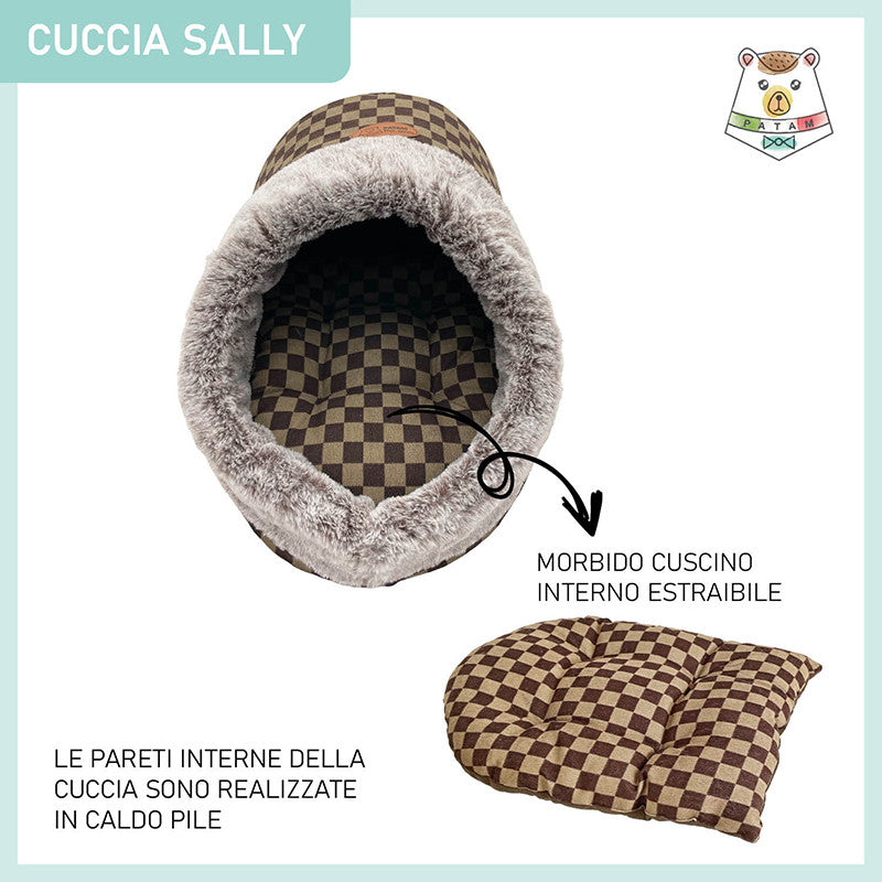 La cuccia Sally è interamente lavabile ed essendo pieghevole si può riporre comodamente senza occupare troppo spazio anche all’interno di un armadio.