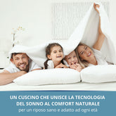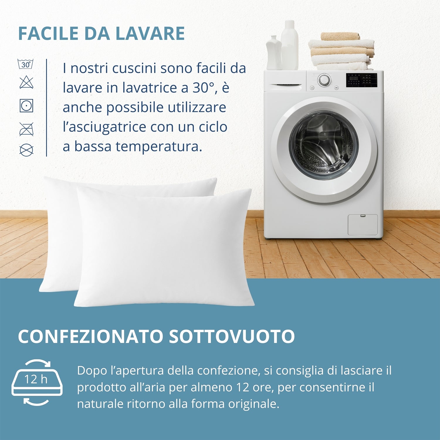 Facile da mantenere, basta estrarre il cuscino dalla confezione sottovuoto, scuoterlo e lasciarlo ravvivare per 24 ore prima dell’uso. È lavabile e conserva nel tempo la sua forma e consistenza.