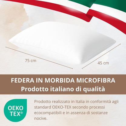 I cuscini da letto Banzaii in microfibra sono progettati per offrire comfort, praticità e qualità Made in Italy. Il tessuto in microfibra morbidissima, ottenuto con una particolare lavorazione spazzolata, dona una piacevole sensazione al tatto e, insieme all’imbottitura in fibra di poliestere anallergica e antiacaro, assicura un riposo sano e confortevole.