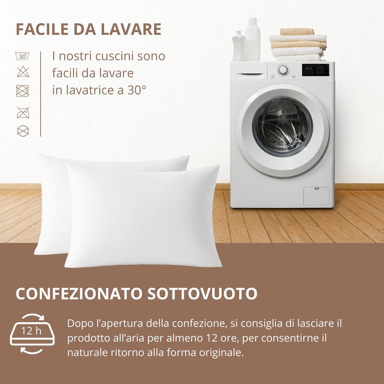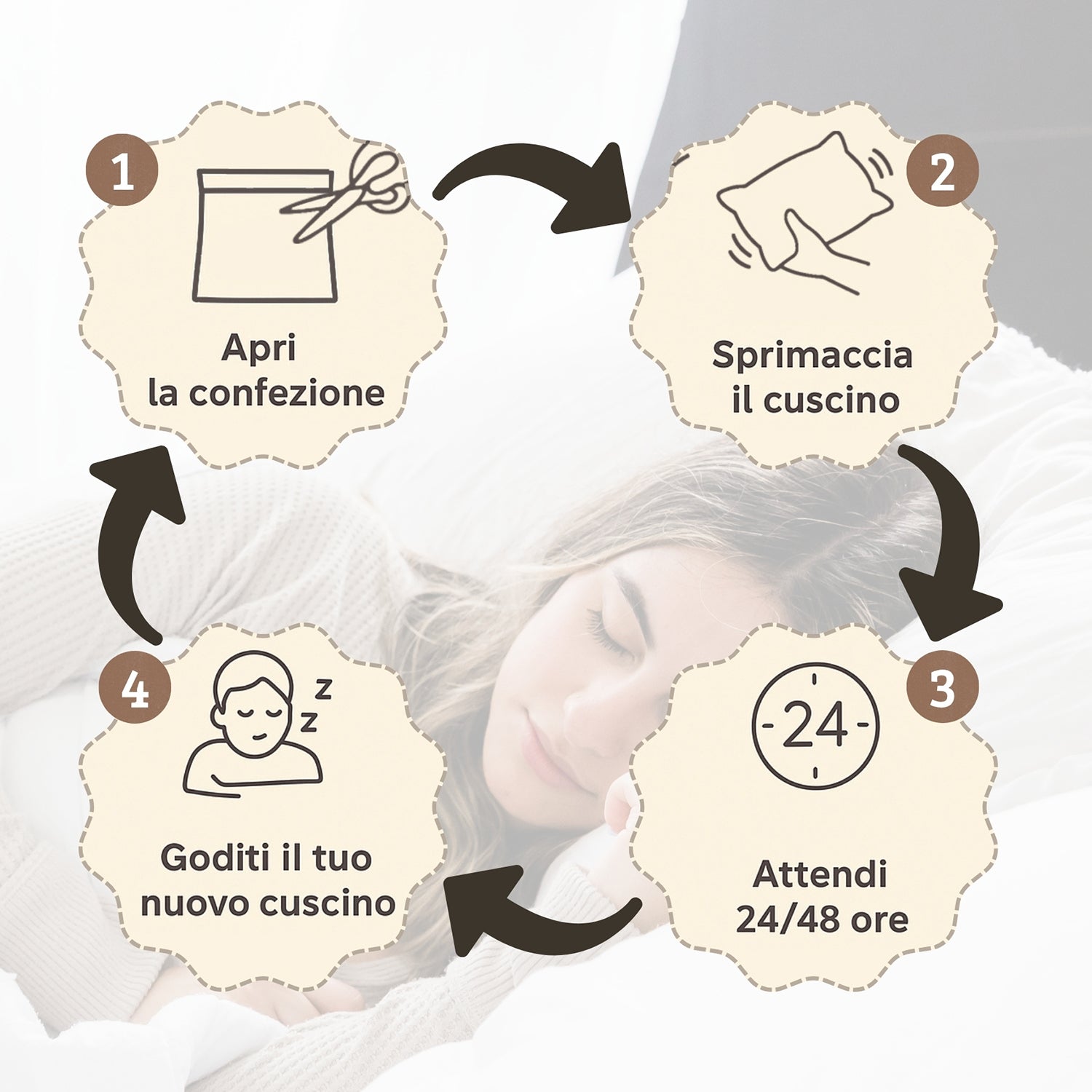 Pratici da mantenere, vengono consegnati sottovuoto: dopo l’apertura è sufficiente scuoterli e lasciarli ravvivare per circa 12 ore. Sono facilmente lavabili e di rapida asciugatura, ideali per l’uso quotidiano.