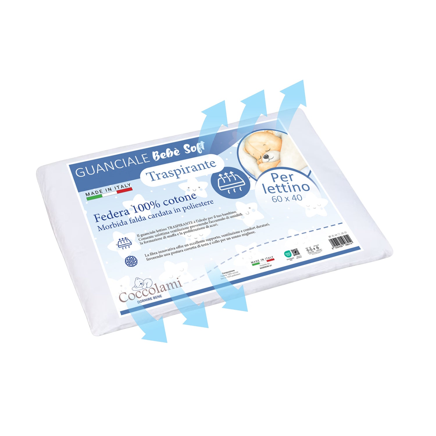 Pensato per i più piccoli, questo guanciale sostiene delicatamente testa e collo, favorendo una postura corretta e un sonno sereno fin dai primi mesi. Le sue dimensioni lo rendono perfetto non solo per culla e lettino, ma anche per l’uso in passeggino.