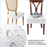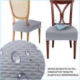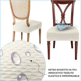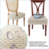 La particolarità di questi coprisedia senza schienale è la loro struttura: al di sotto del tessuto è presente uno strato impermeabile che trattiene i liquidi e, evitando la loro dispersione, impedisce che attraversino il tessuto e macchino la sedia sottostante.