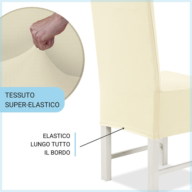 Adatto a tutte le sedie con altezza dello schienale da 40 a 60cm e seduta da 35 a 50 cm sia in larghezza che in profondità. Grazie alla particolare composizione SUPERELASTICA del tessuto vestirai le tue sedie con facilità ed eleganza.