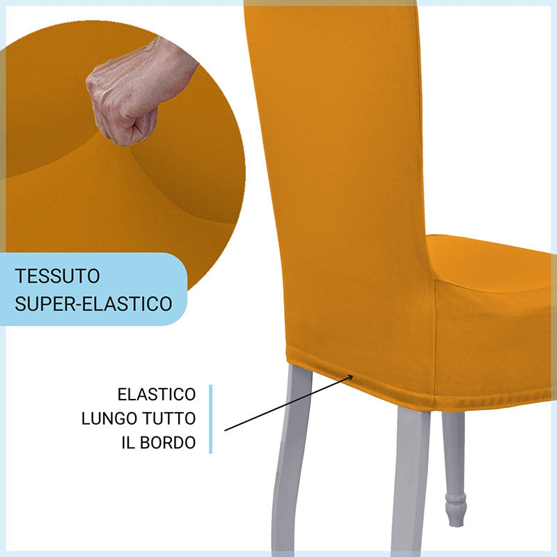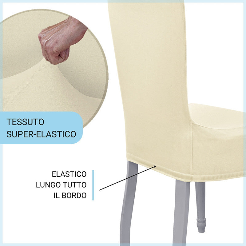 Adatto a tutte le sedie con altezza dello schienale tondo da 40 a 60cm e seduta da 35 a 50 cm sia in larghezza che in profondità. Grazie alla particolare composizione SUPERELASTICA del tessuto vestirai le tue sedie con facilità ed eleganza.