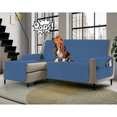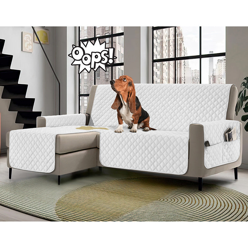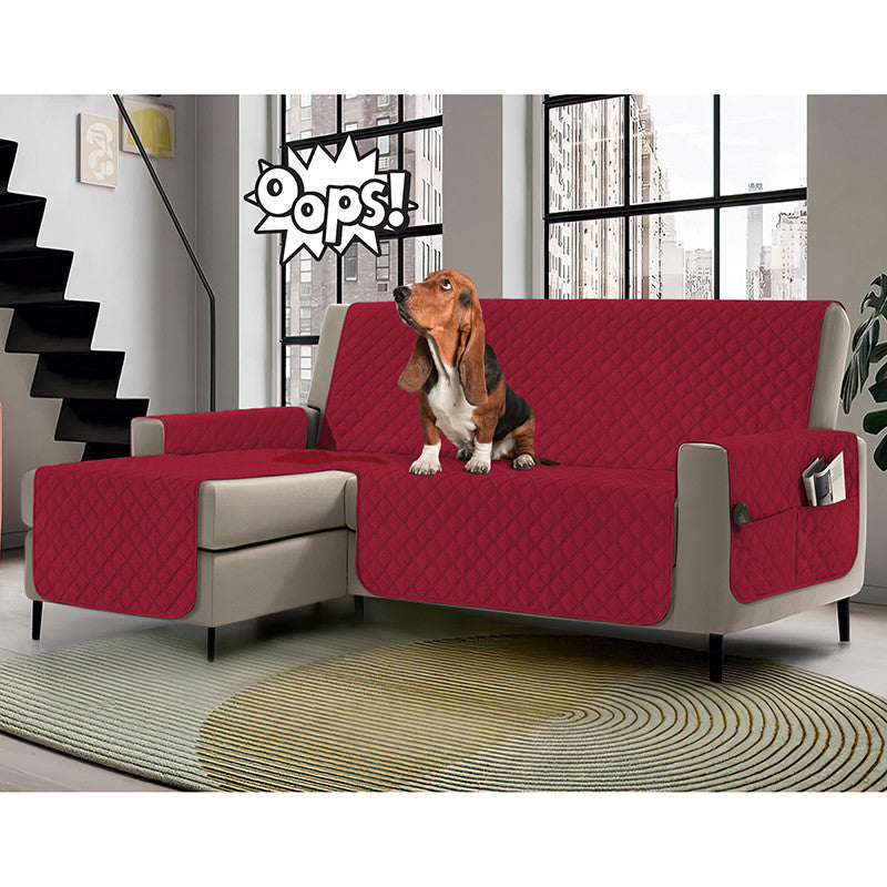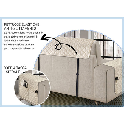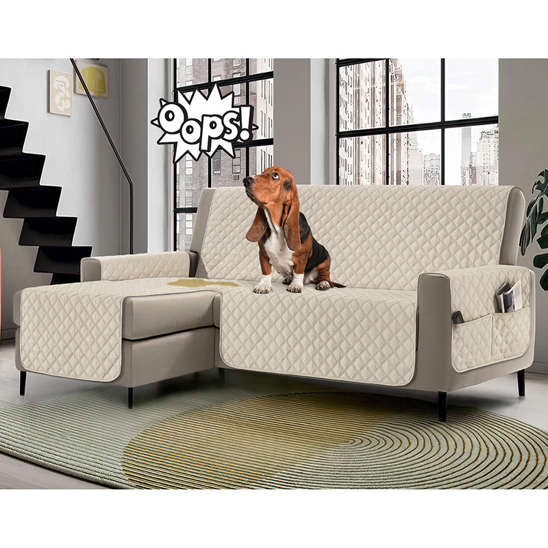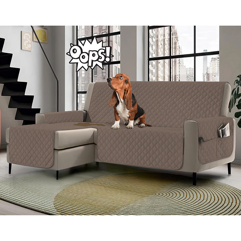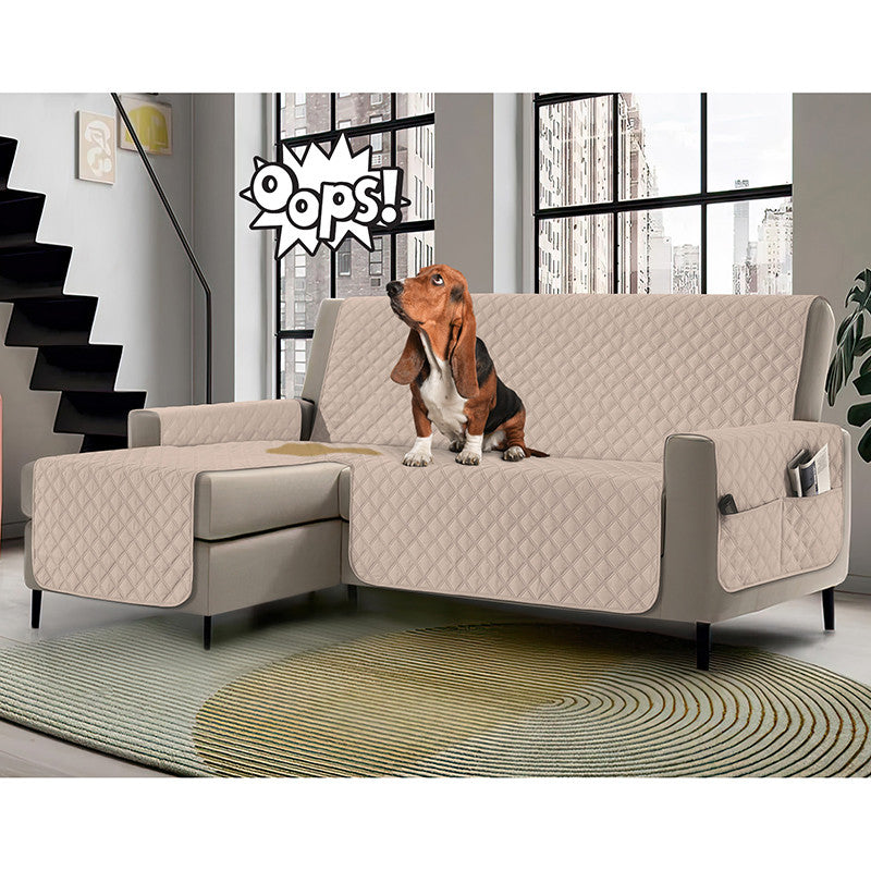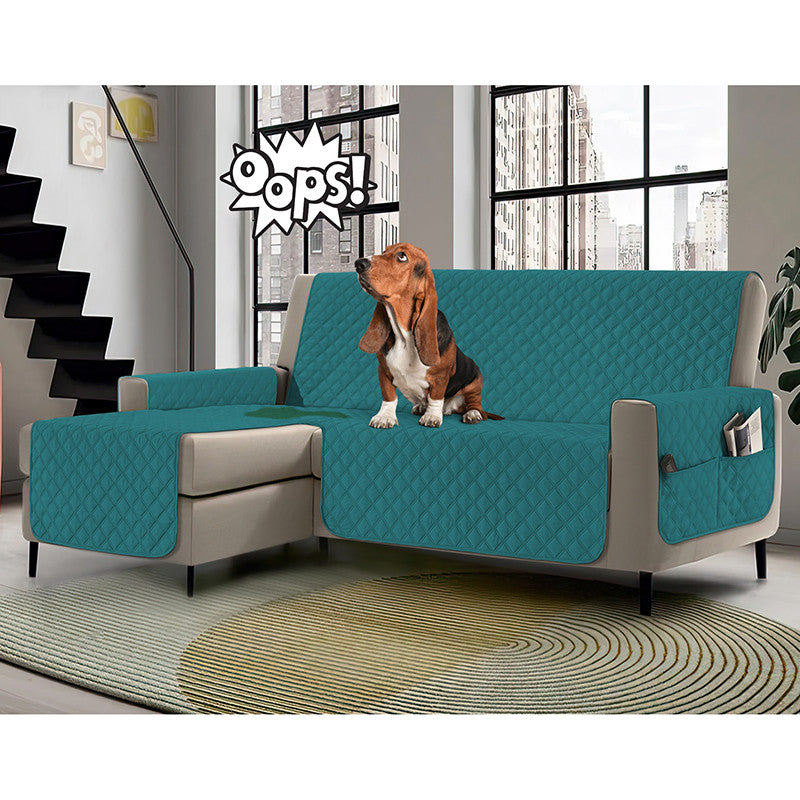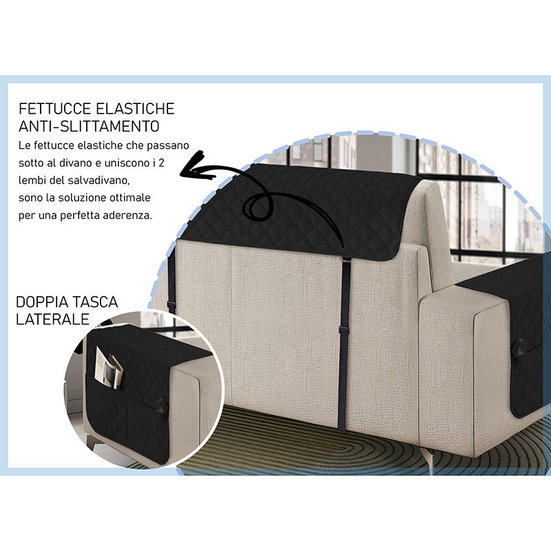 Copridivano con penisola impermeabile, salvadivano antimacchia, trapuntato, reversibile con tasche porta oggetti