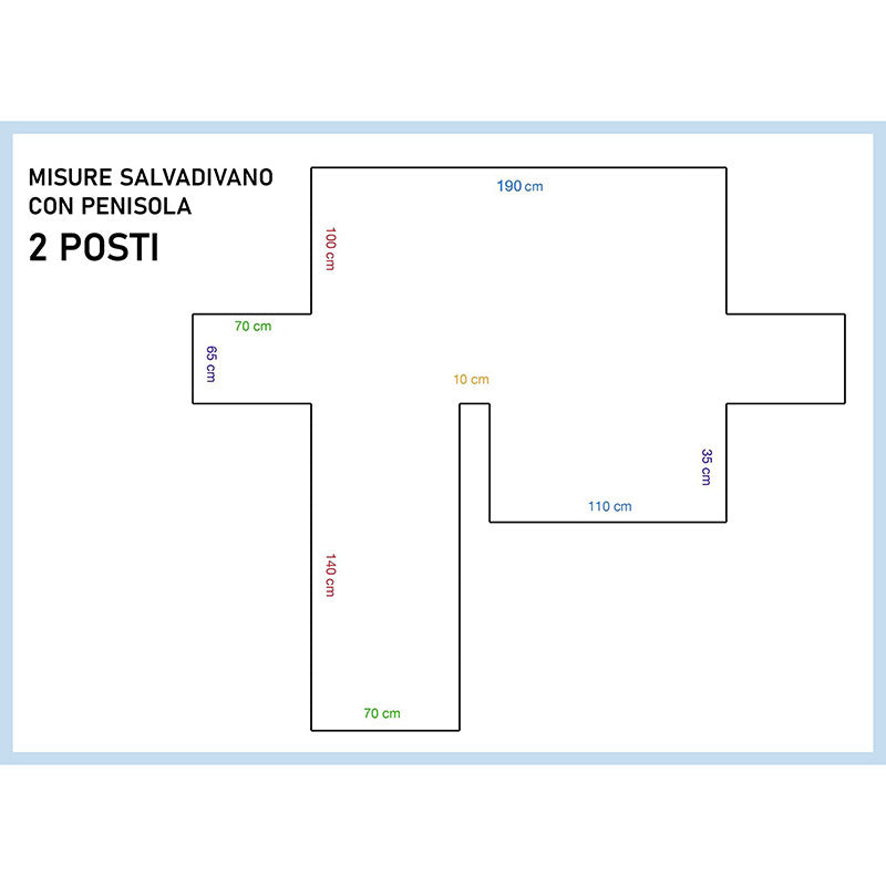 Copridivano con penisola 2 posti (larghezza schienale 190 cm)