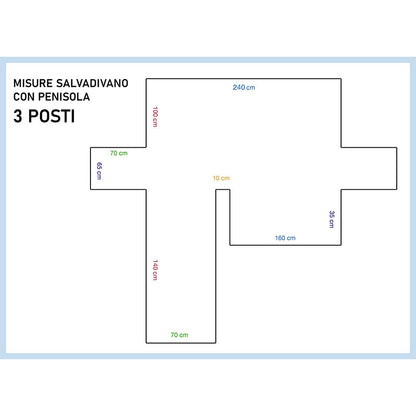 Copridivano con penisola 3 posti (larghezza schienale 240 cm)