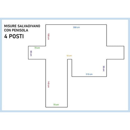 Copridivano con penisola 4 posti (larghezza schienale 290 cm)