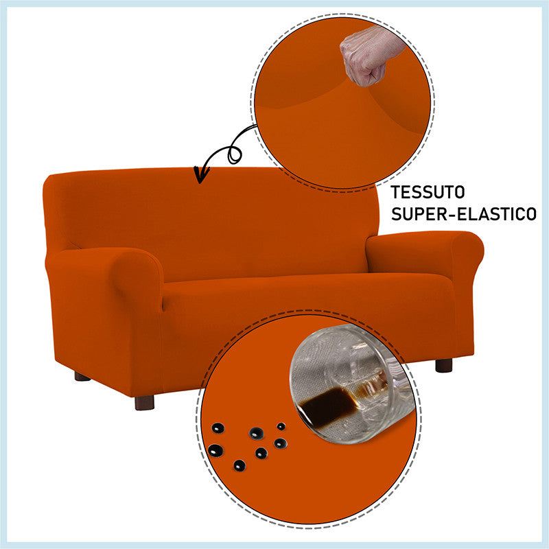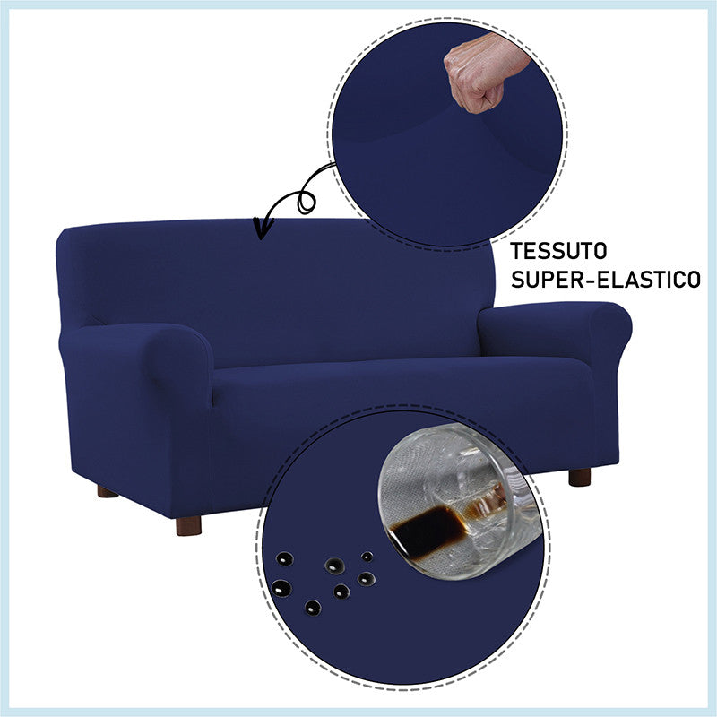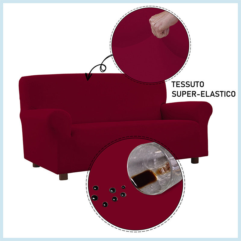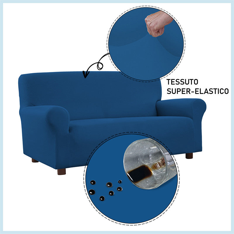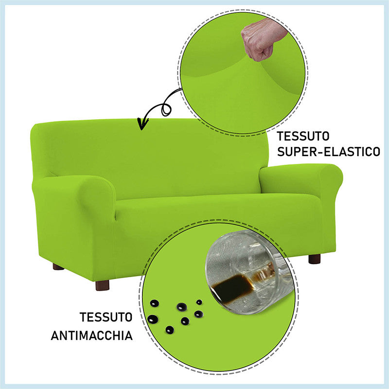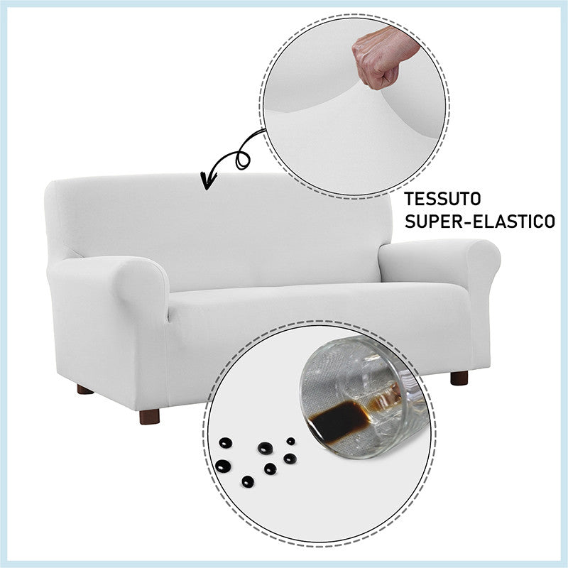 Copridivano con speciale trattamento antimacchia, ideato e lavorato in Italia. Questo copridivano in tessuto superelastico, facile da montare e da lavare, non si macchia e garantisce una resistenza continua a tutti i liquidi e le sostanze che normalmente macchiano i tessuti. Grazie allo speciale tessuto ed al trattamento è possibile rimuovere ogni macchia con un semplice panno umido.