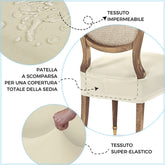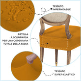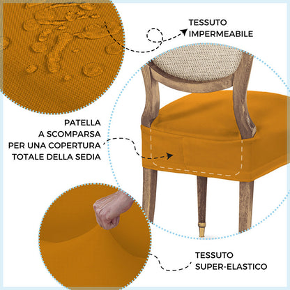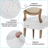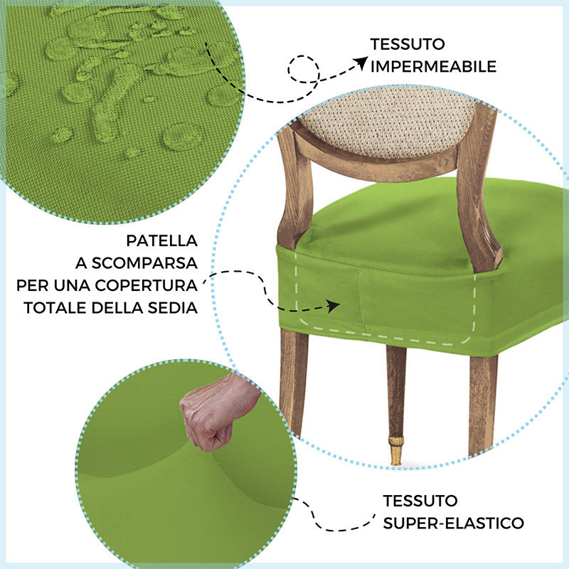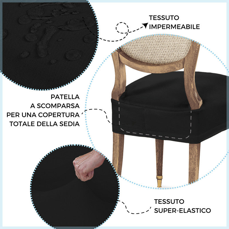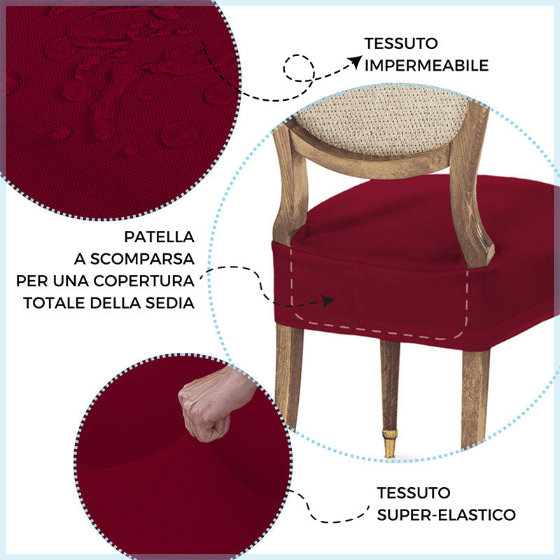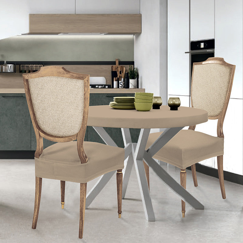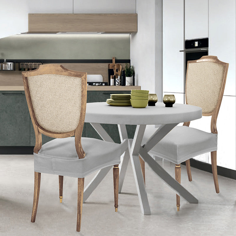 Adatto a tutte le sedie con seduta che vanno da 35 a 50 cm sia in larghezza che in profondità. Grazie al trattamento antimacchia la tua sedia sarà protetta da schizzi di cibo e bevande, mentre grazie alla particolare composizione super elastica del tessuto vestirai le tue sedie con facilità ed eleganza.