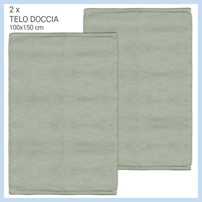 Prodotto con speciale trattamento super assorbenza. Composizione: 100% cotone di altissima qualità. Spugna 550 grammi/mq.
