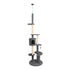 Albero tiragraffi in sisal a più livelli Sky. La particolarità di questo albero tiragraffi è la sua altezza regolabile, infatti va dal pavimento fino al soffitto, a cui può essere agganciato con un componente in acciaio. E’ composto da 3 pali tiragraffi e 4 piattaforme imbottite per riposo. Inoltre, è costituito da una grotta-casetta cilindrica (30x30x28 cm) con apertura ad arco e vari giochi (una pallina pendente e una pallina con molla).