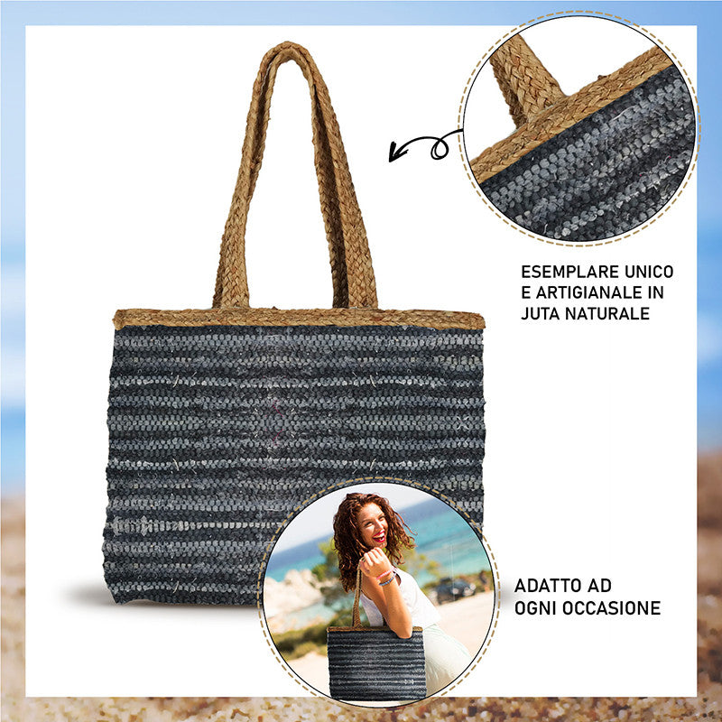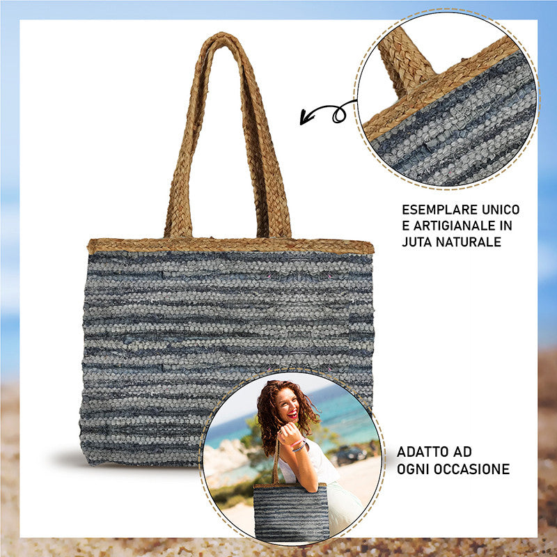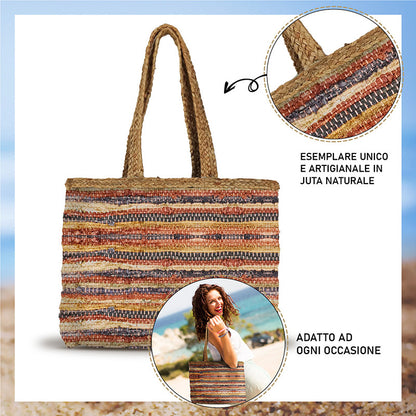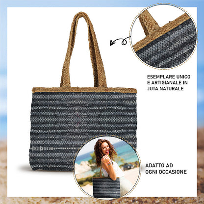 Borsa estiva da mare, spiaggia, in juta interamente realizzata a mano SAINT-TROPEZ