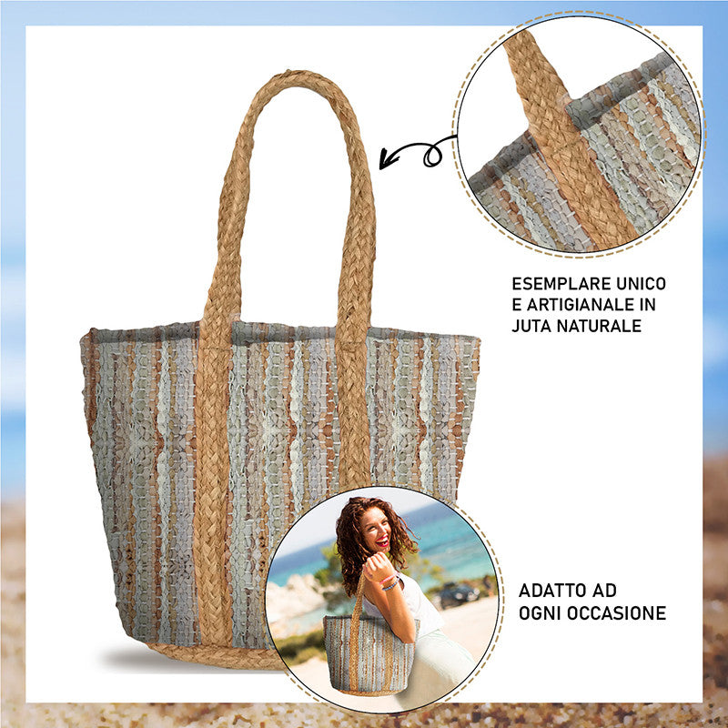 Borsa estiva da mare, spiaggia, in juta interamente realizzata a mano SANTORINI