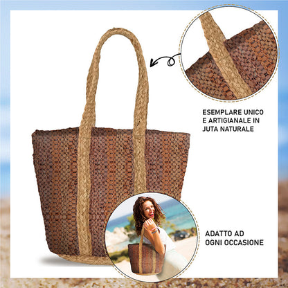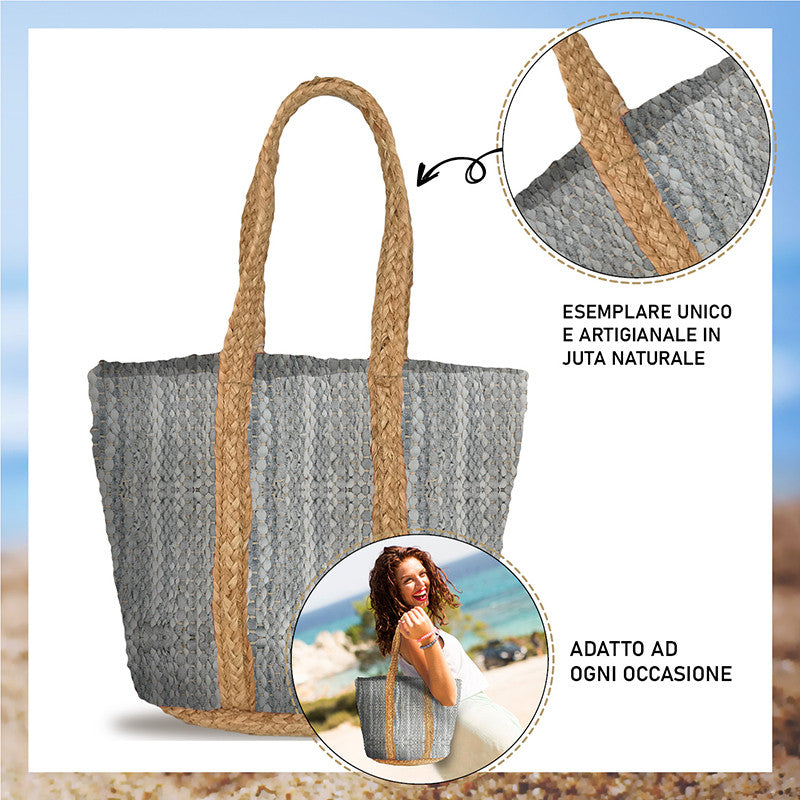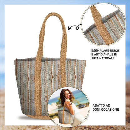 Borsa estiva da mare, spiaggia, in juta interamente realizzata a mano SANTORINI