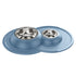 Ciotola doppia per cani e gatti in acciaio inossidabile dotata di morbido tappetino integrato antiscivolo, antigoccia e antiribaltamento.