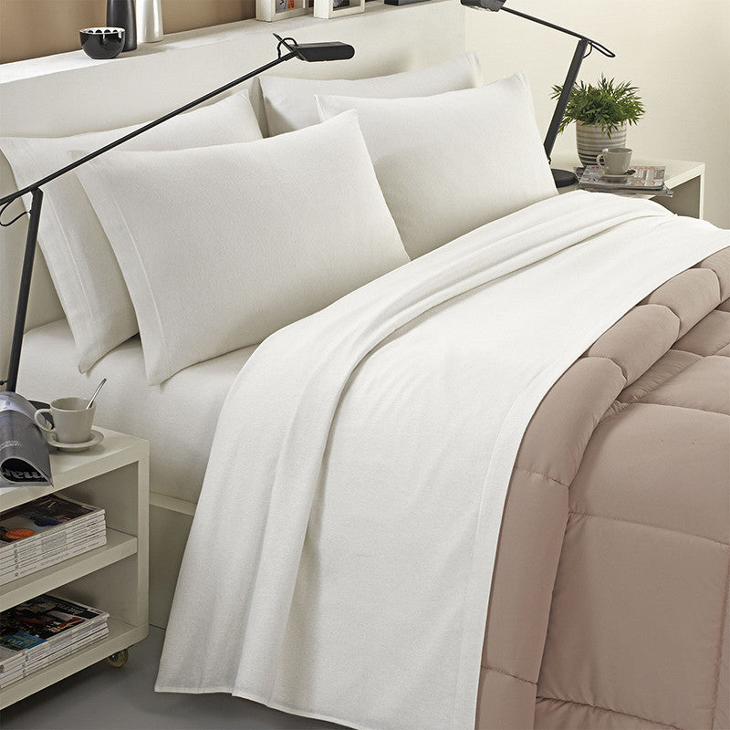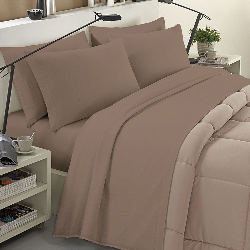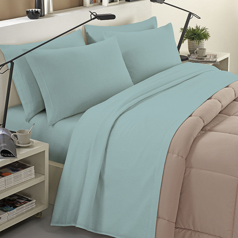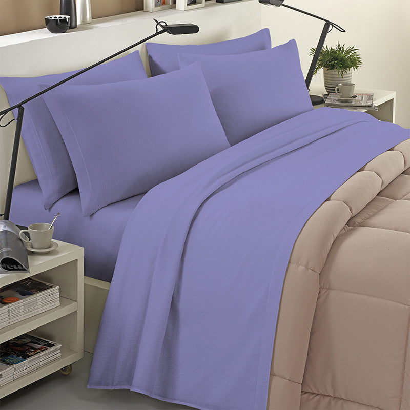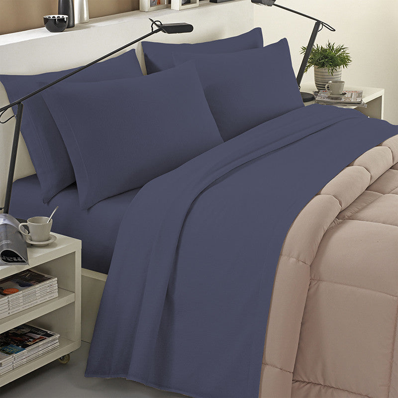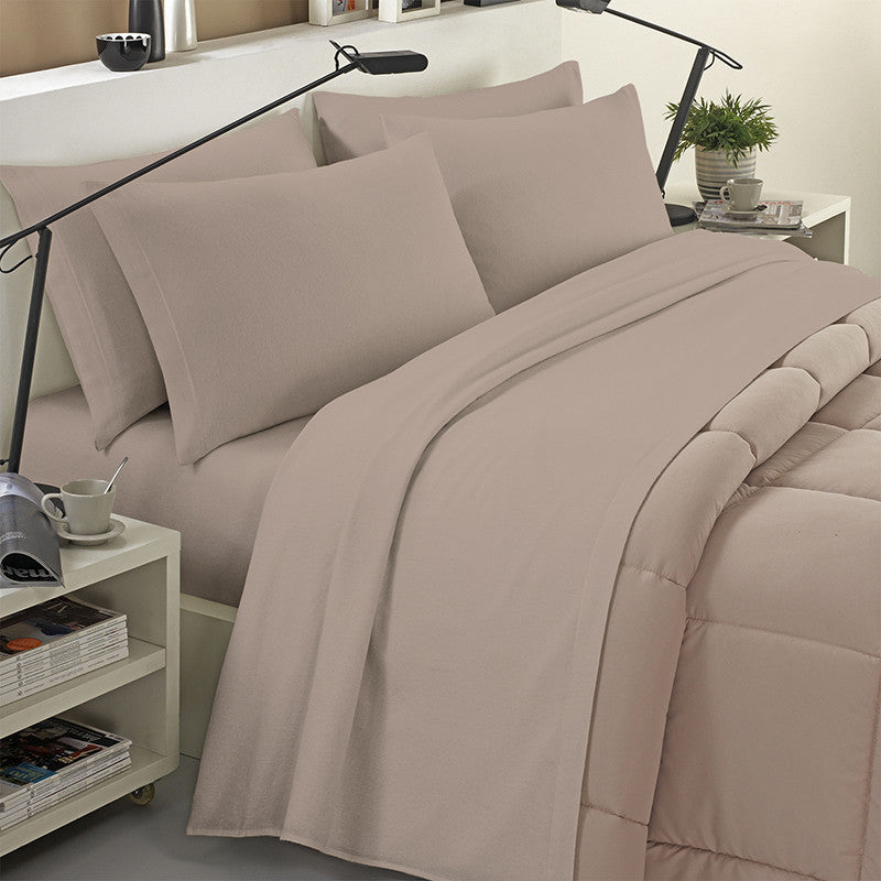 Completo lenzuola in flanella 100% cotone tinta unita