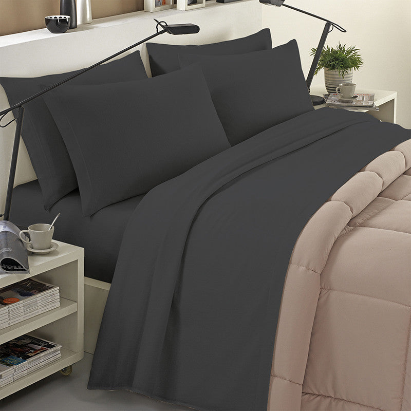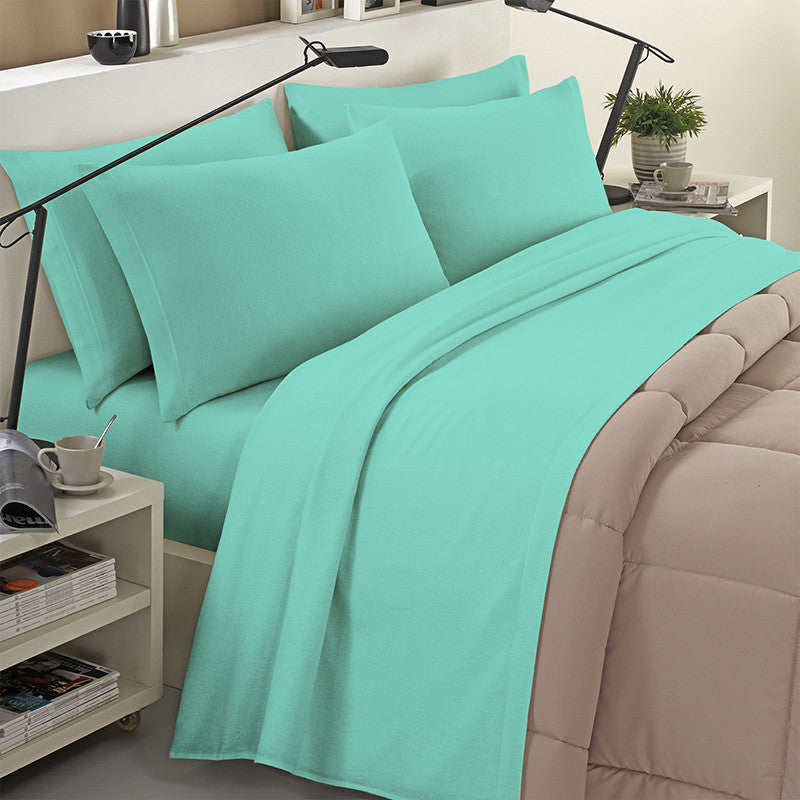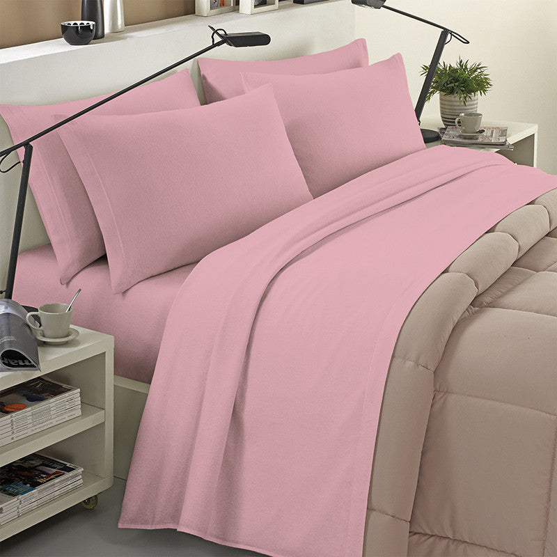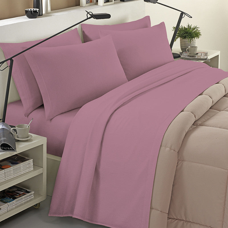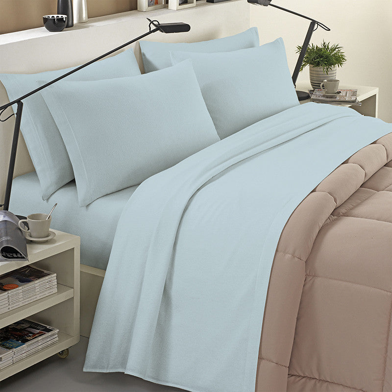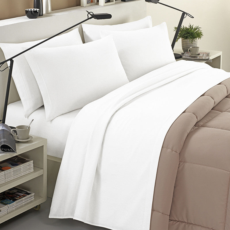 Completo lenzuola in flanella 100% cotone tinta unita