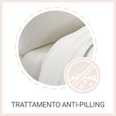 Tutti i completi letto sono stati sottoposti a trattamento anti-pilling che evita la formazione di fastidiosi pallini di tessuto.