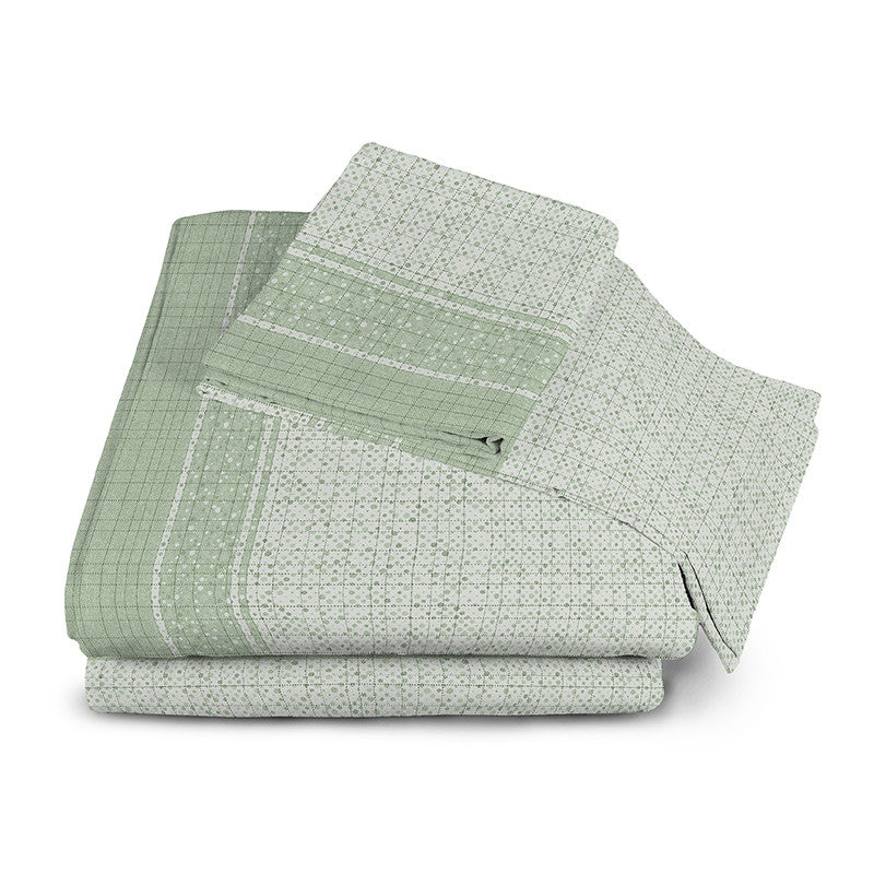 Completo francese: confezione composta da quattro pezzi: 1 lenzuolo sotto per materassi 130/140 x 190/200 cm - altezza da 15 a 35 cm; 1 lenzuolo sopra 205 x 290 cm; 2 Federe 50 x 80 cm