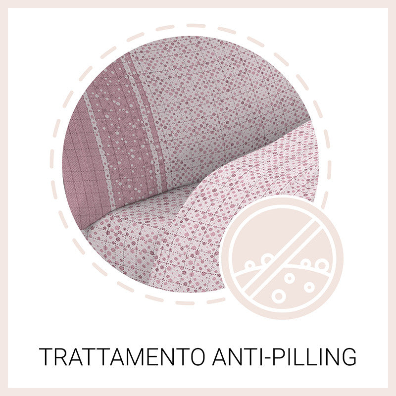 Tutti i completi letto sono stati sottoposti a trattamento anti-pilling che evita la formazione di fastidiosi pallini di tessuto.