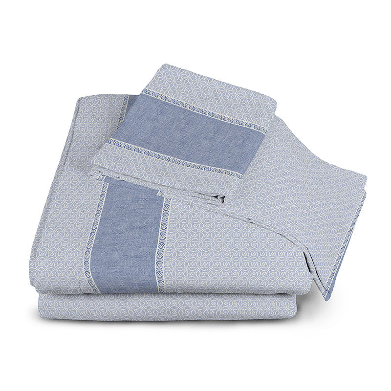 Completo francese: confezione composta da quattro pezzi: 1 lenzuolo sotto per materassi 130/140 x 190/200 cm - altezza da 15 a 35 cm; 1 lenzuolo sopra 205 x 290 cm; 2 Federe 50 x 80 cm