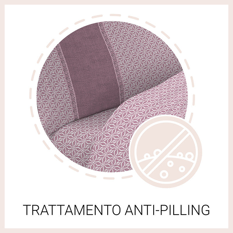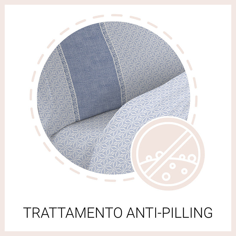 Tutti i completi letto sono stati sottoposti a trattamento anti-pilling che evita la formazione di fastidiosi pallini di tessuto.