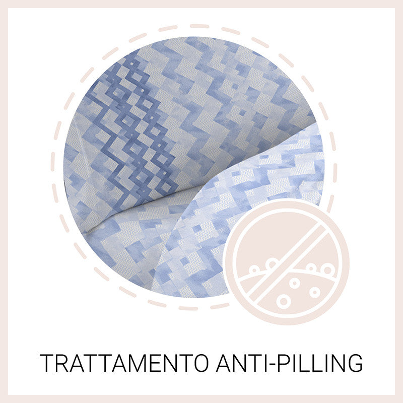 Tutti i completi letto sono stati sottoposti a trattamento anti-pilling che evita la formazione di fastidiosi pallini di tessuto.