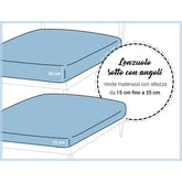 Completo singolo: confezione composta da tre pezzi: 1 lenzuolo sotto per materassi 80/90 x 190/200 cm - altezza da 15 a 35 cm; 1 lenzuolo sopra 155 x 290 cm; 1 Federa 50 x 80 cm