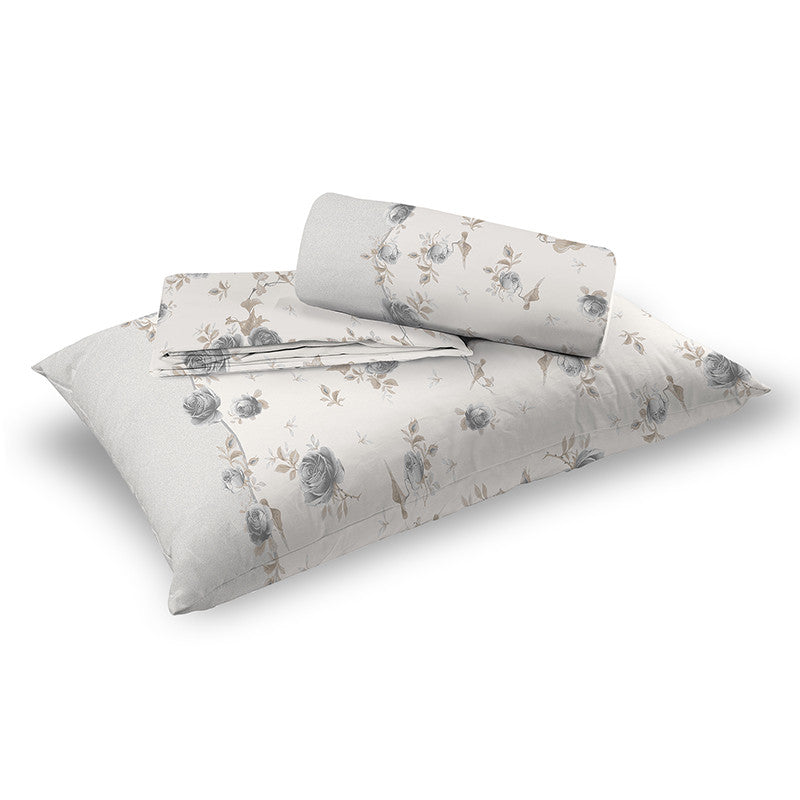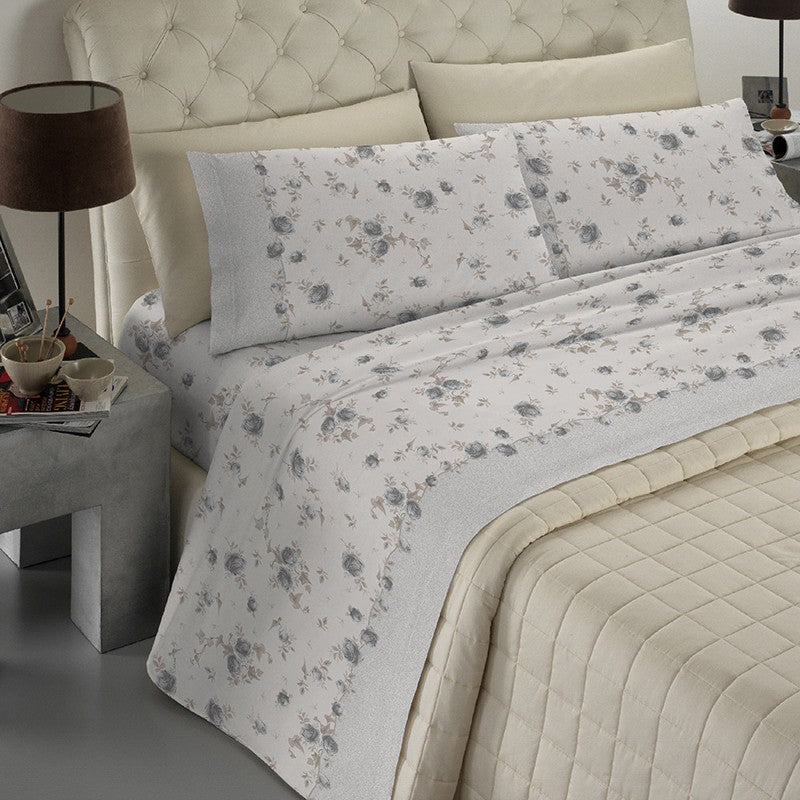 Completo francese: confezione composta da quattro pezzi: 1 lenzuolo sotto per materassi 130/140 x 190/200 cm - altezza da 15 a 35 cm; 1 lenzuolo sopra 205 x 290 cm; 2 Federe 50 x 80 cm