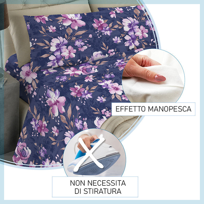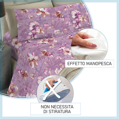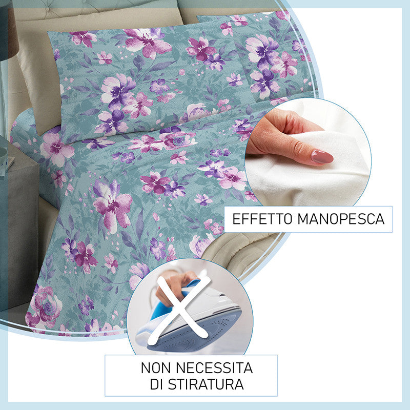 Set completo lenzuola in 100% morbida microfibra effetto manopesca interamente realizzato in Italia.