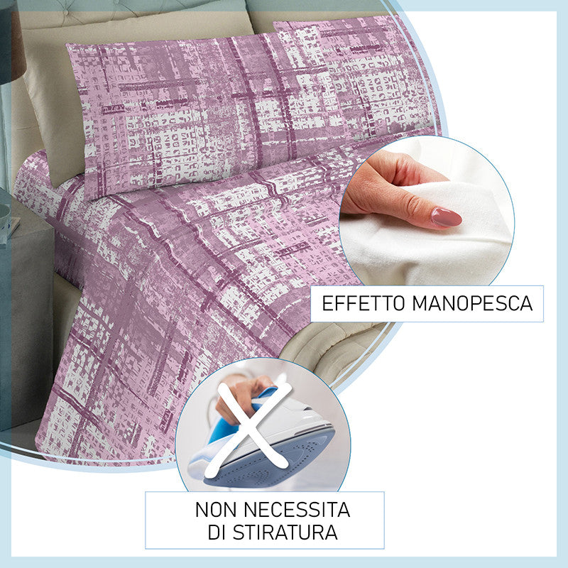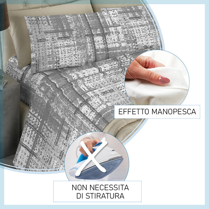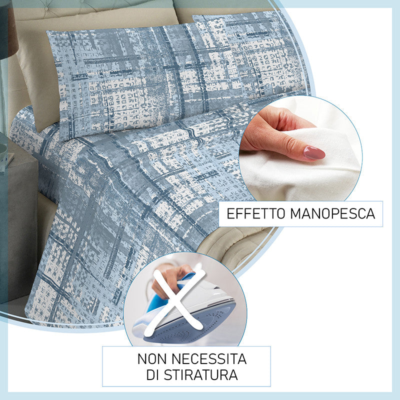 Set completo lenzuola in 100% morbida microfibra effetto manopesca interamente realizzato in Italia.