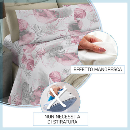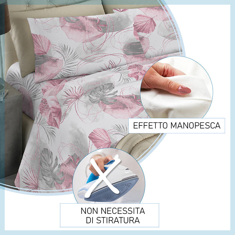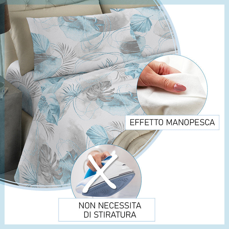Set completo lenzuola in 100% morbida microfibra effetto manopesca interamente realizzato in Italia.