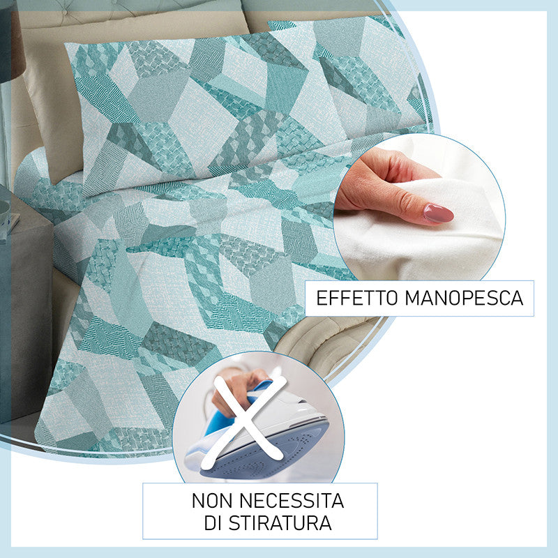 Set completo lenzuola in 100% morbida microfibra effetto manopesca interamente realizzato in Italia.