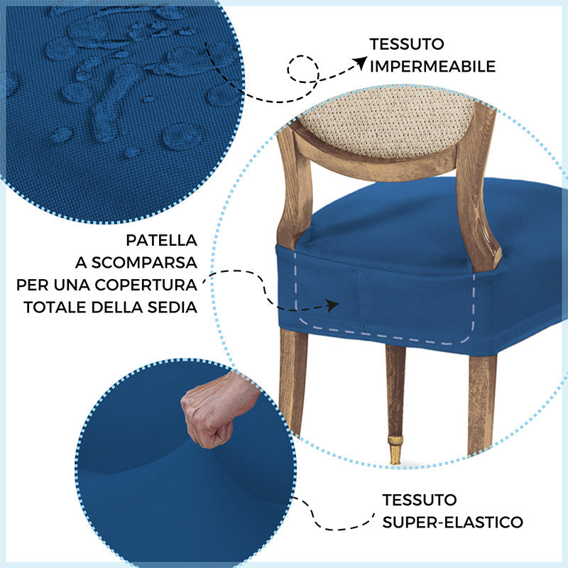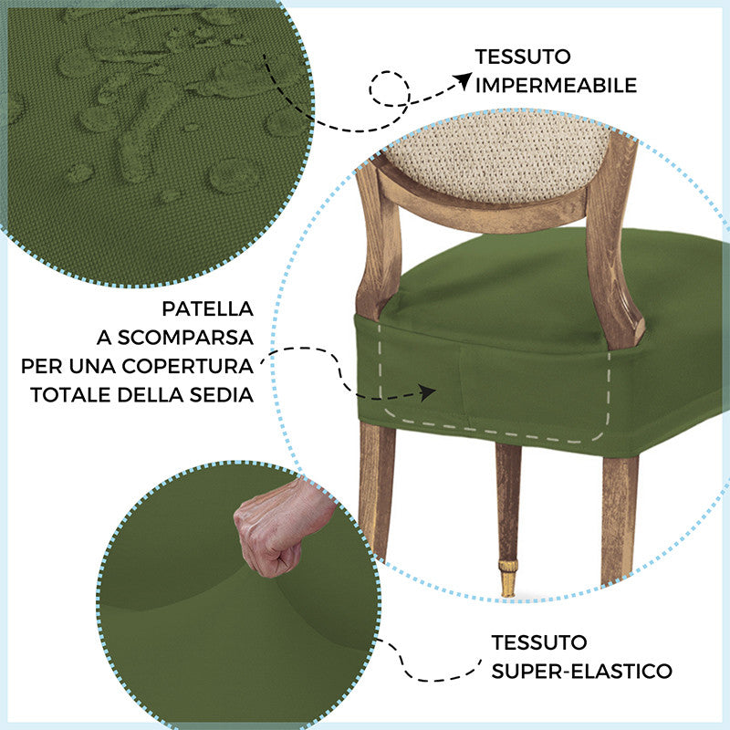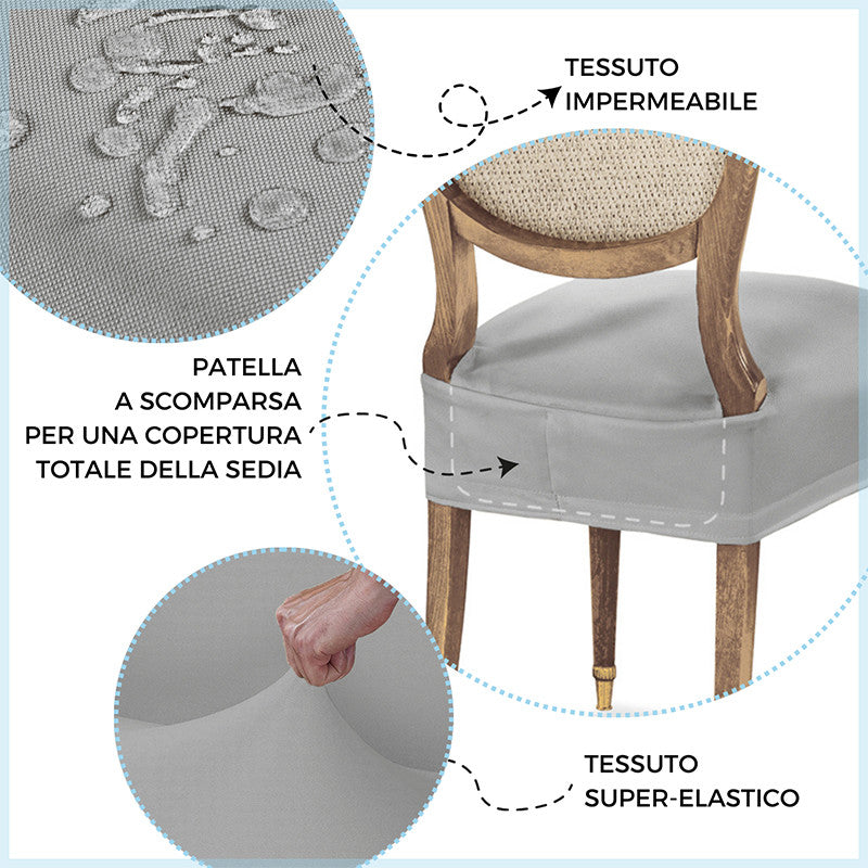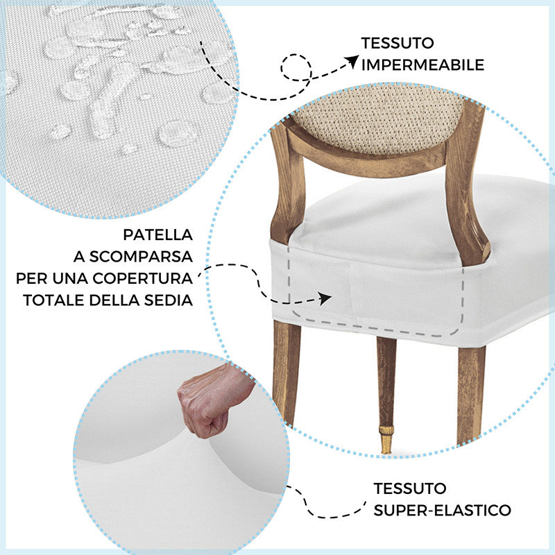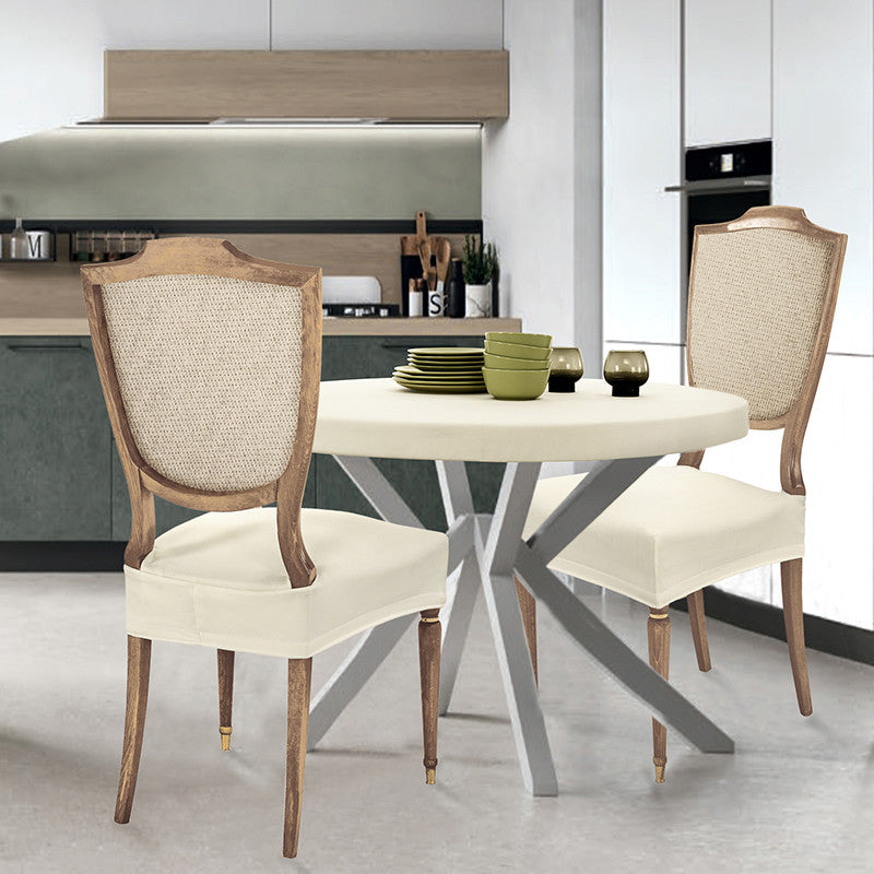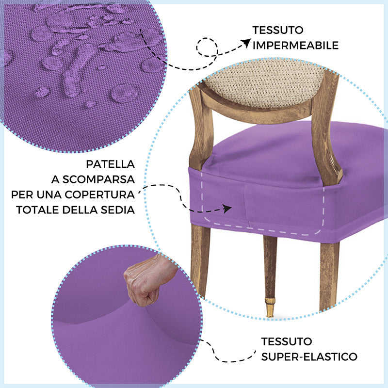 Adatto a tutte le sedie con seduta che vanno da 35 a 50 cm sia in larghezza che in profondità. Grazie al trattamento antimacchia la tua sedia sarà protetta da schizzi di cibo e bevande, mentre grazie alla particolare composizione super elastica del tessuto vestirai le tue sedie con facilità ed eleganza.