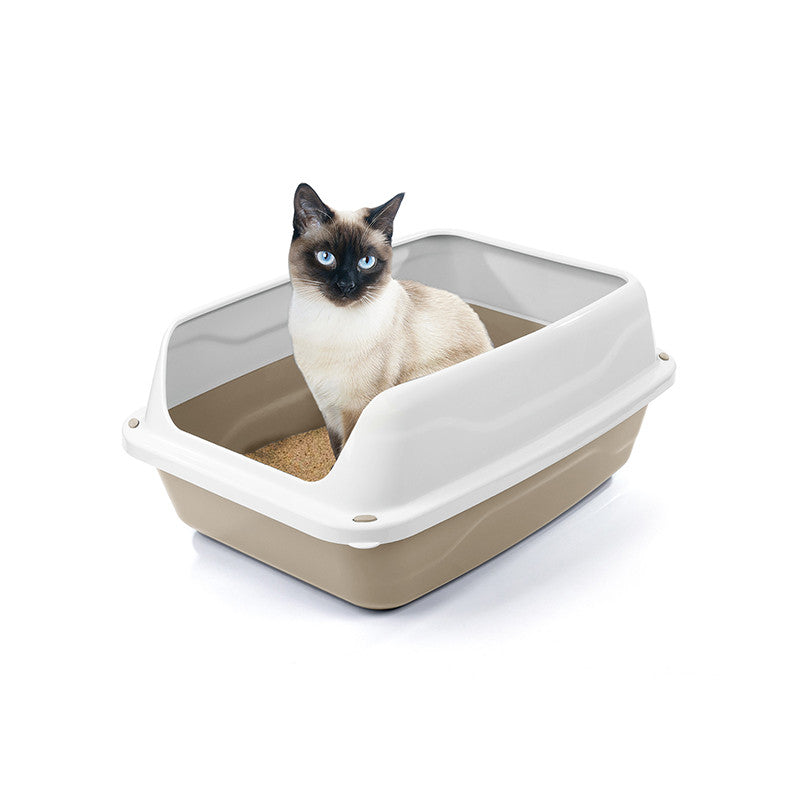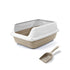 Lettiera aperta per gatti con bordi alti salvasporco, dotata di paletta omaggio.