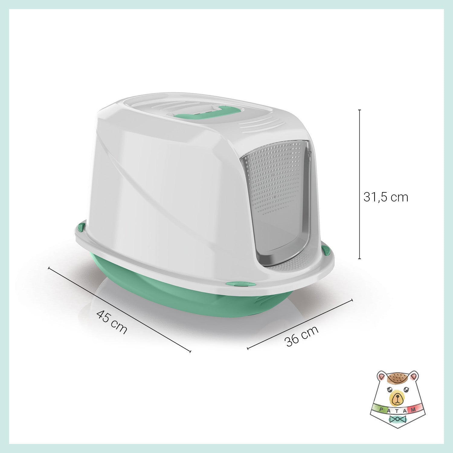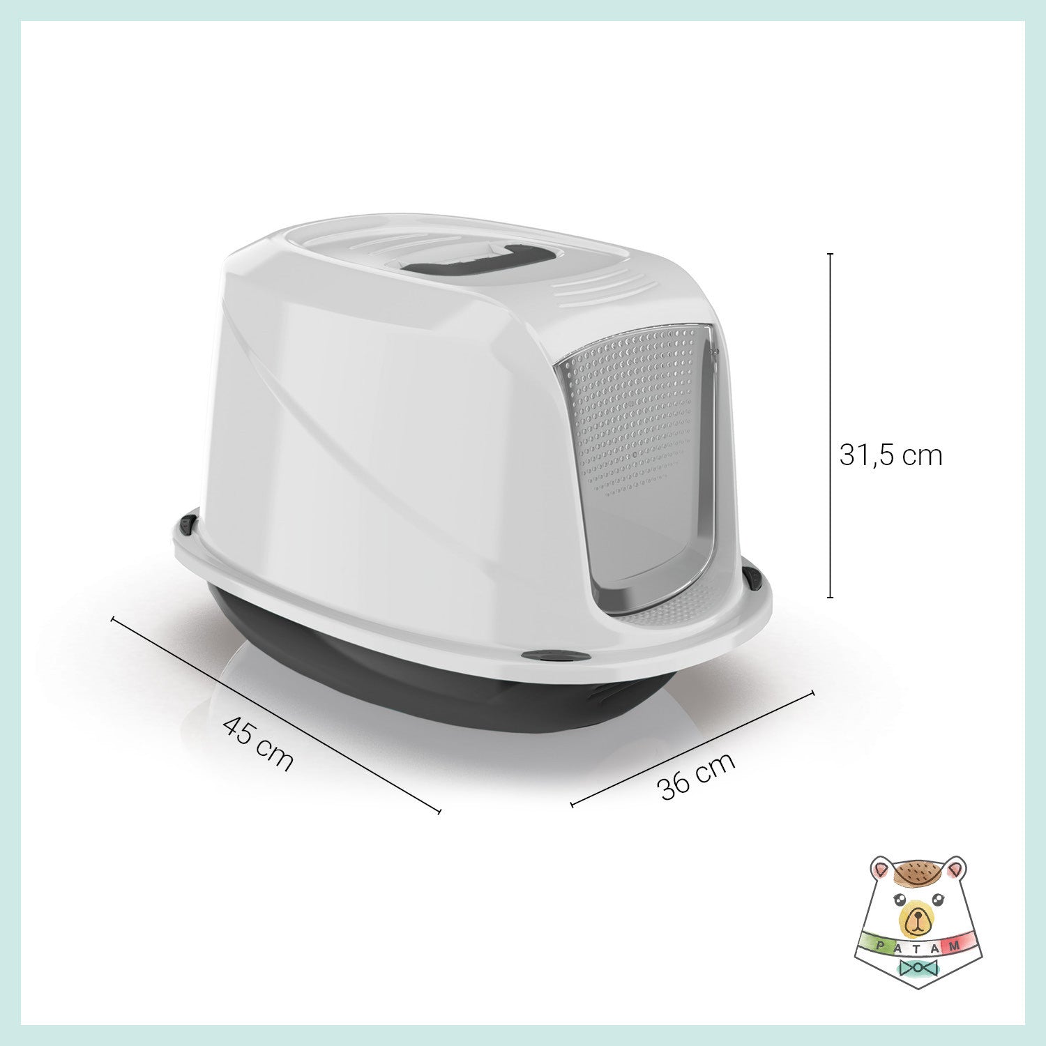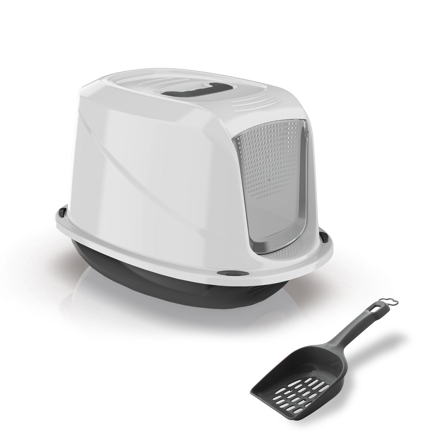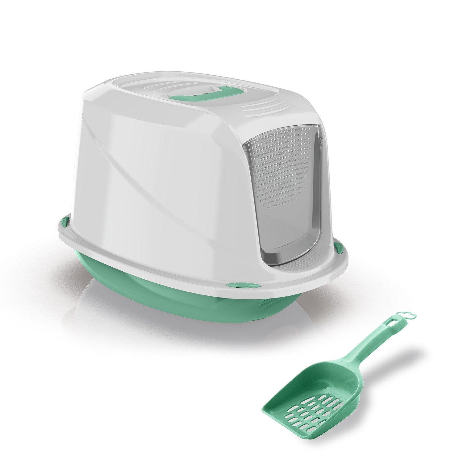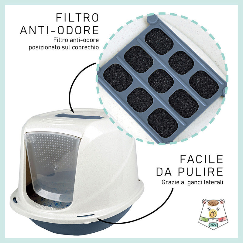 Lettiera chiusa per gatti dal design moderno dotata di paletta omaggio. Compatta e chiusa: questa toilette è salvasporco, limita i cattivi odori grazie al filtro e inoltre è di dimensioni contenute, ideale per chi non ha molto spazio in casa.