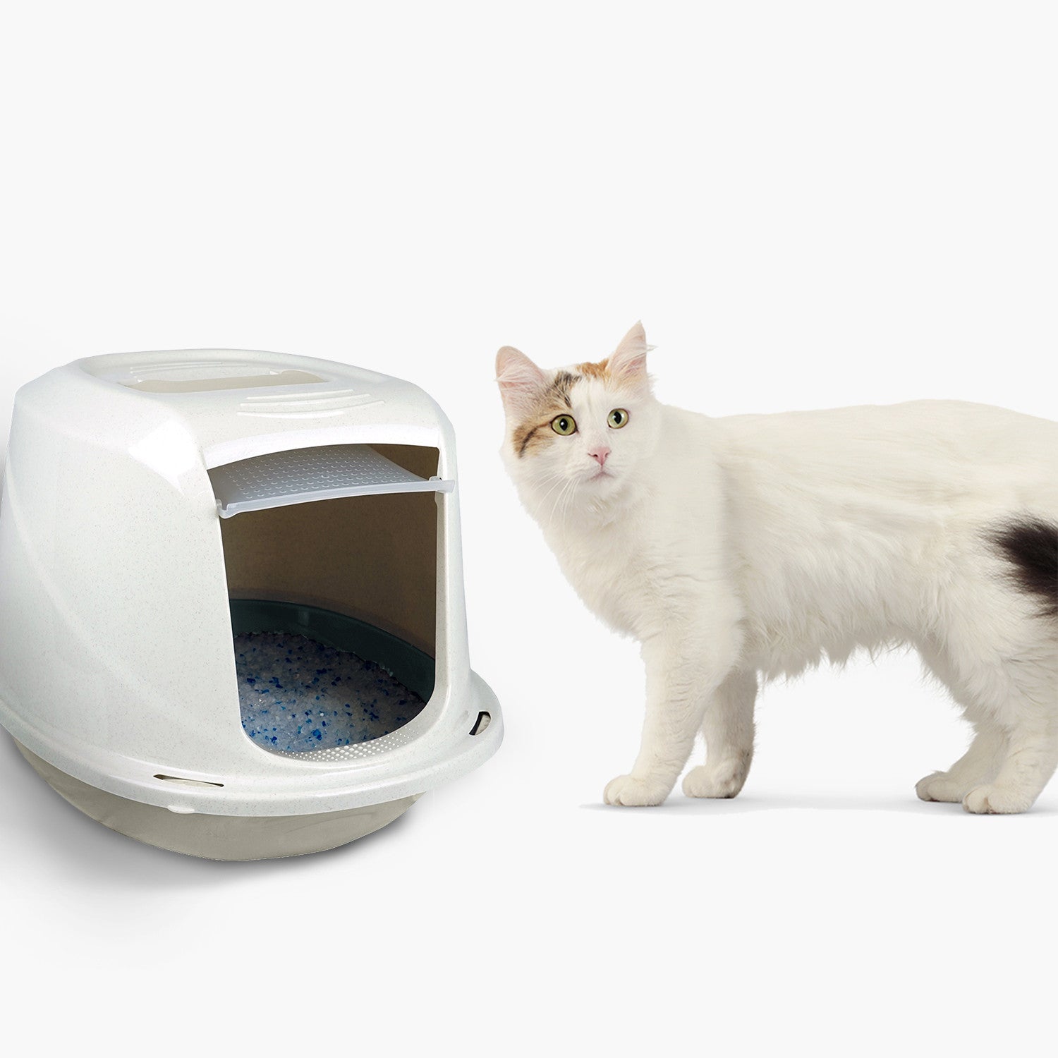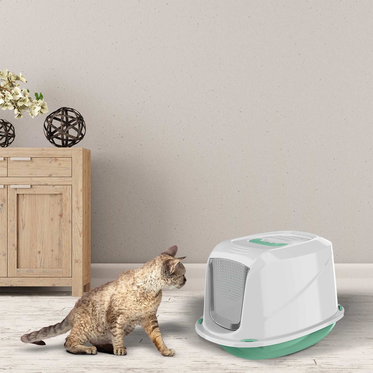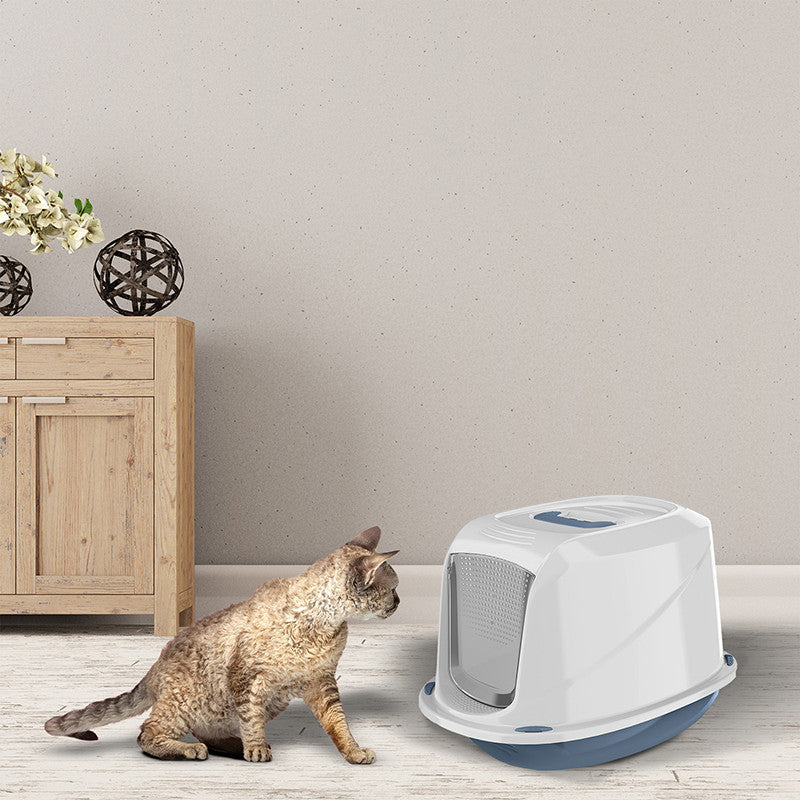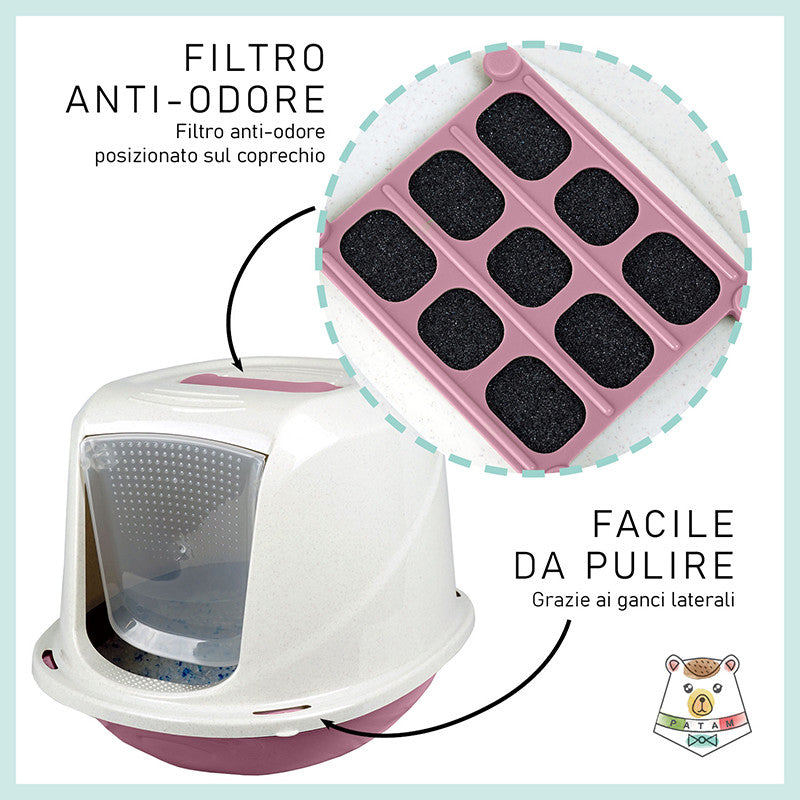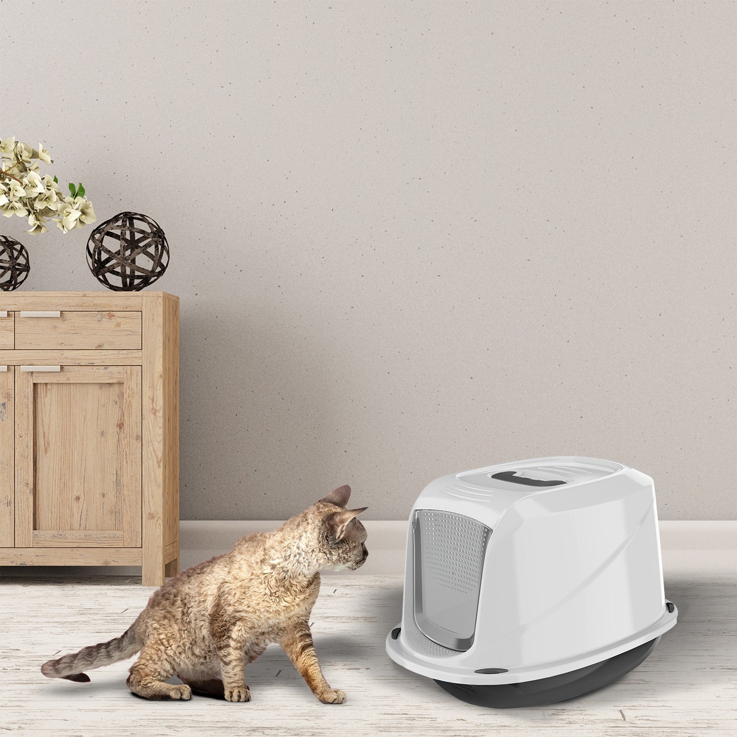 Lettiera chiusa per gatti dal design moderno dotata di paletta omaggio. Compatta e chiusa: questa toilette è salvasporco, limita i cattivi odori grazie al filtro e inoltre è di dimensioni contenute, ideale per chi non ha molto spazio in casa.