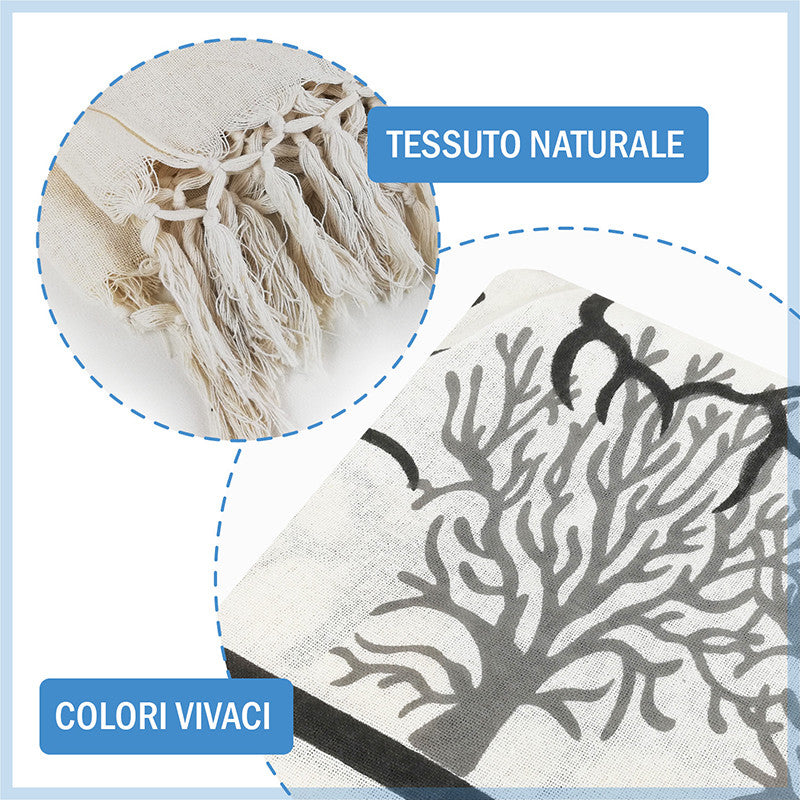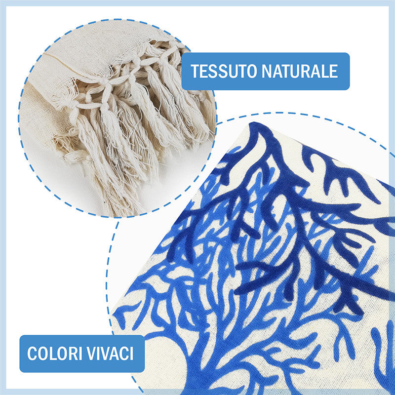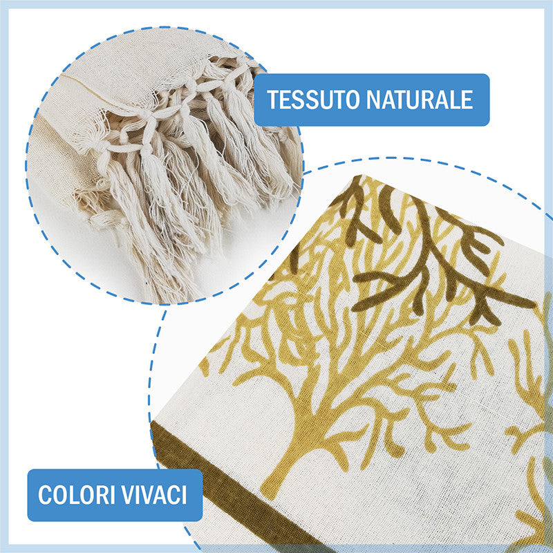 Telo maxi multiuso e versatile, utilizzabile come telo mare antisabbia ad asciugatura rapida per famiglie e coppie, ma anche come copriletto e copridivano. Il tessuto leggero in cotone lo rende ideale da utilizzare nelle stagioni più calde.