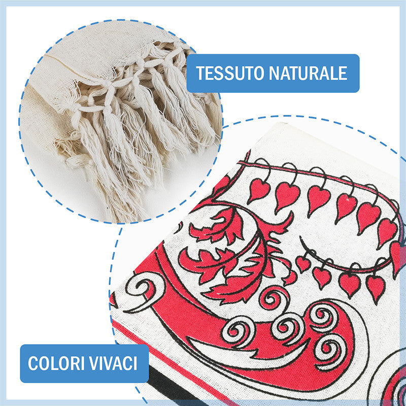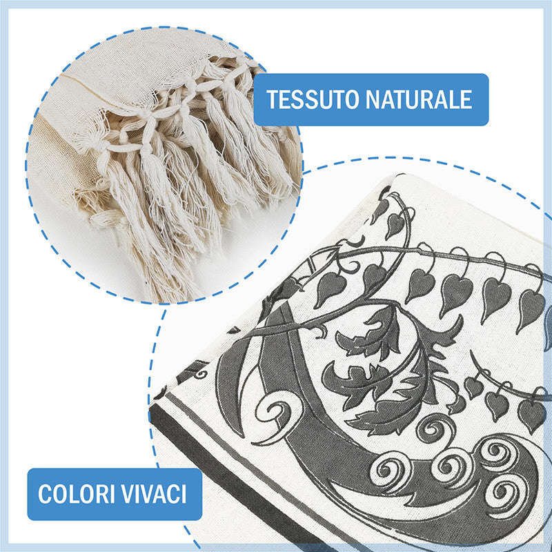 Telo maxi multiuso e versatile, utilizzabile come telo mare antisabbia ad asciugatura rapida per famiglie e coppie, ma anche come copriletto e copridivano. Il tessuto leggero in cotone lo rende ideale da utilizzare nelle stagioni più calde.