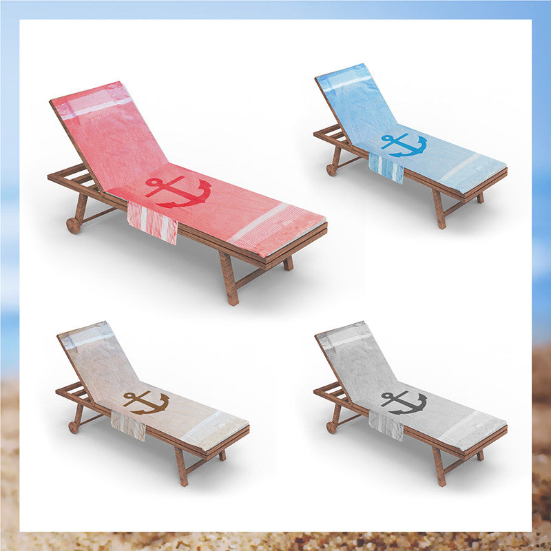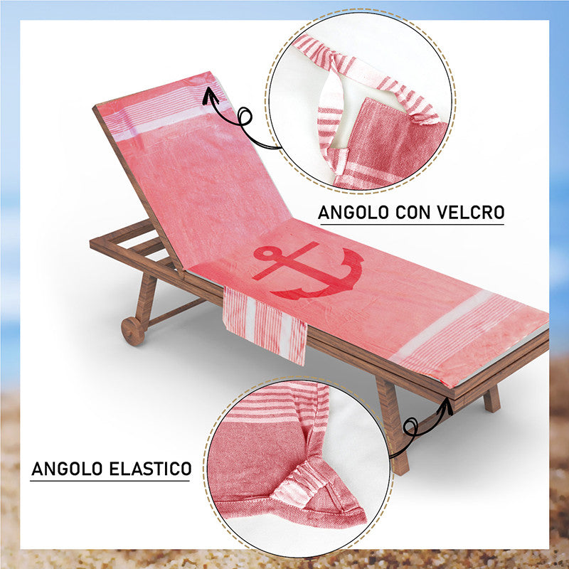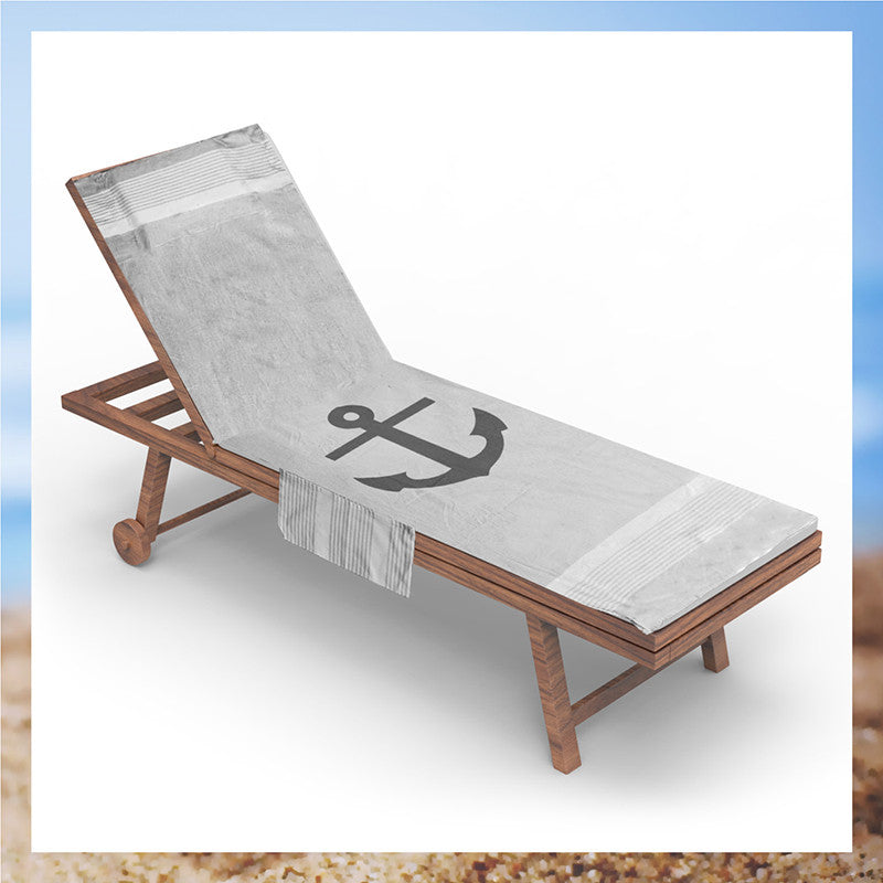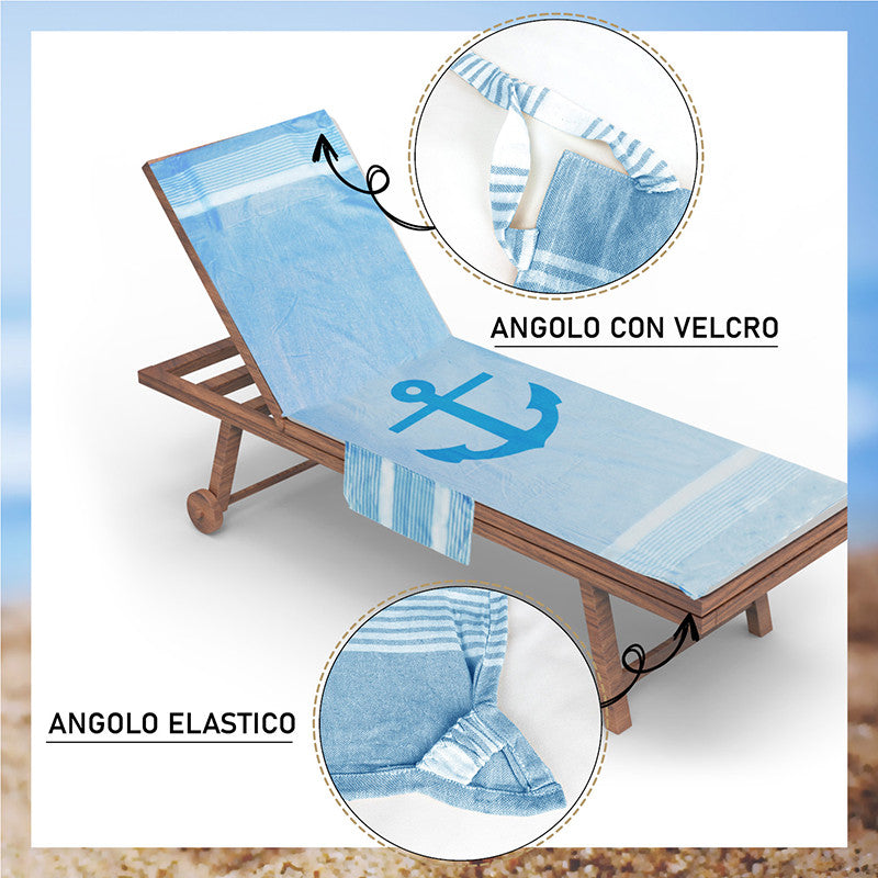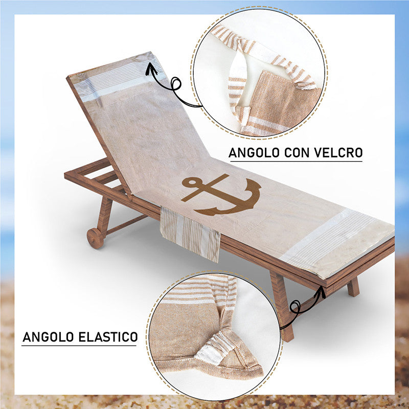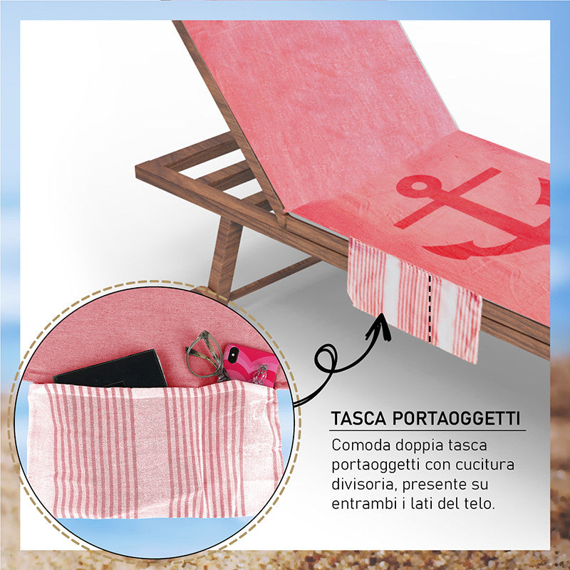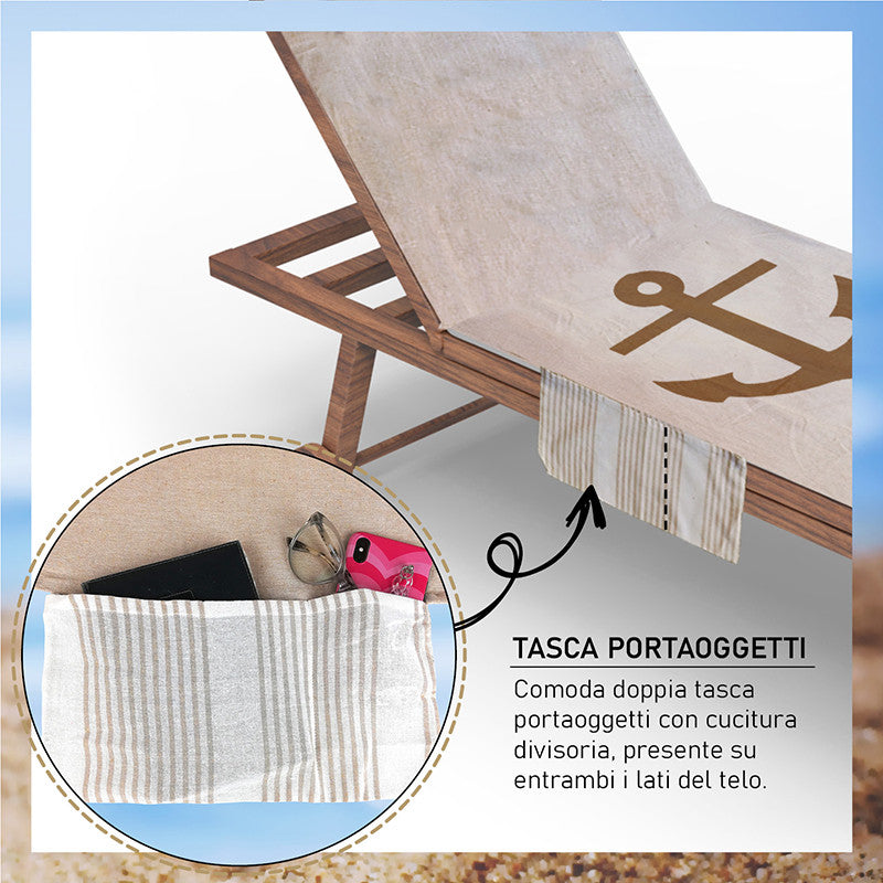 Telo mare per lettino con cuscino removibile e tasche portaoggetti - Ancora