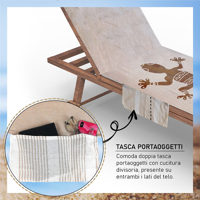 Telo mare per lettino con cuscino removibile e tasche portaoggetti - Geco