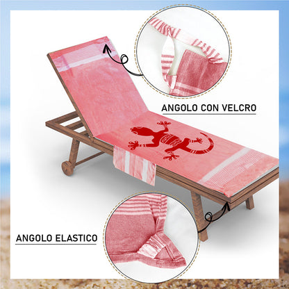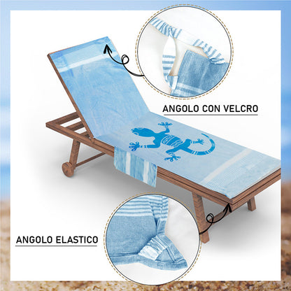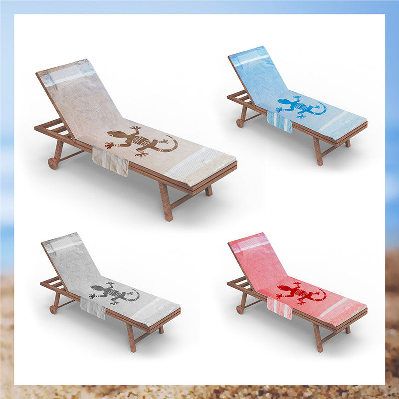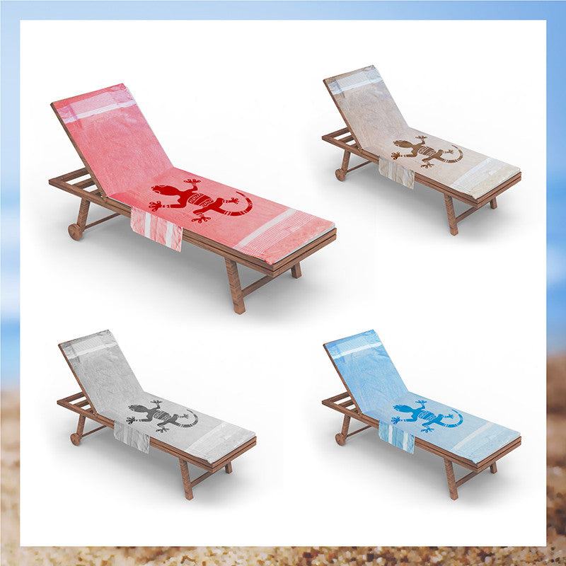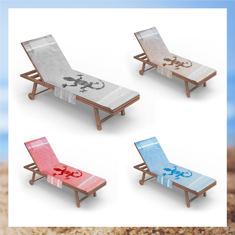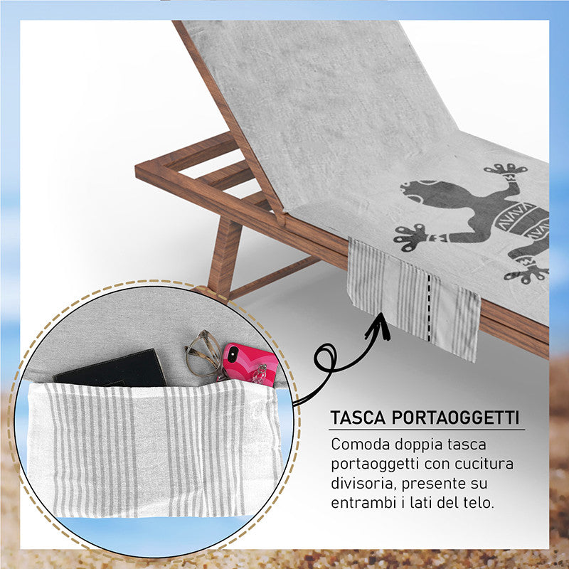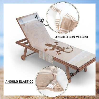 Telo mare per lettino con cuscino removibile e tasche portaoggetti - Geco