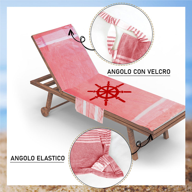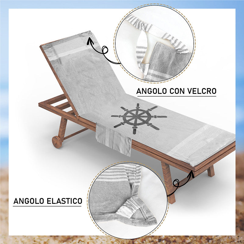 Telo mare per lettino con cuscino removibile e tasche portaoggetti - Timone